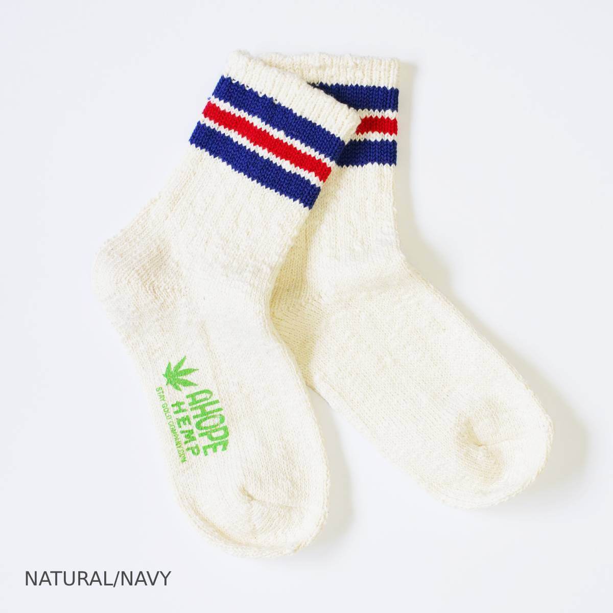 A HOPE HEMPの定番靴下「スラブネップ3本ラインソックス」。
