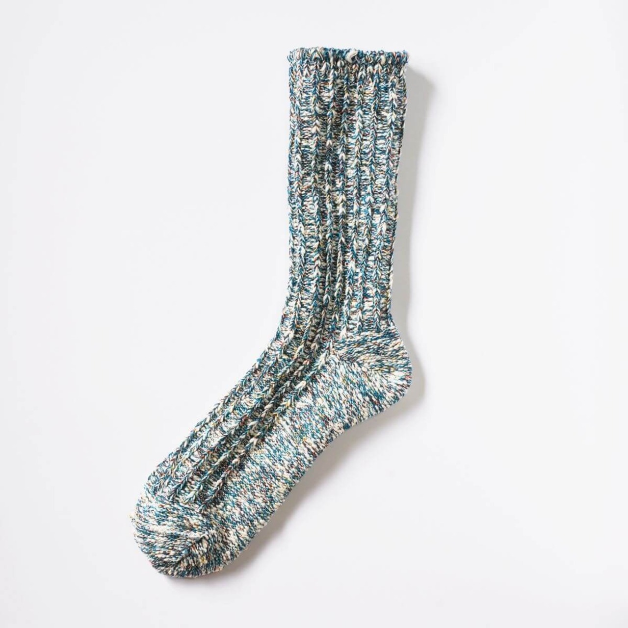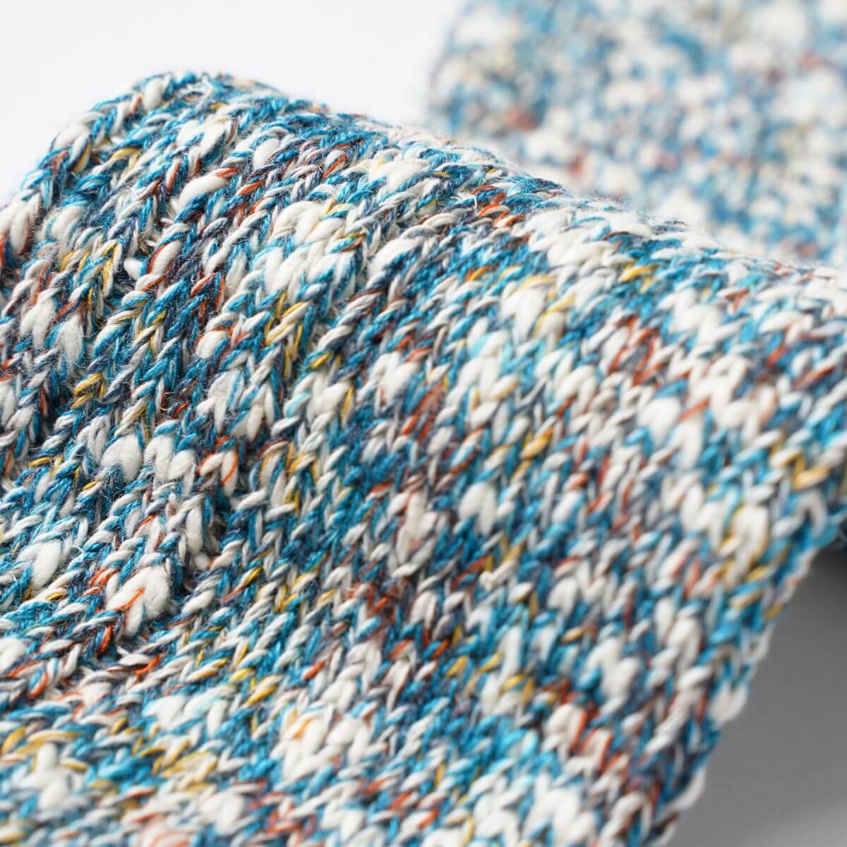 定番のスラブネップ無地ソックス(SHSX-007)のMix糸の色数を増やしてカラフルなスラブ生地に仕上げています。