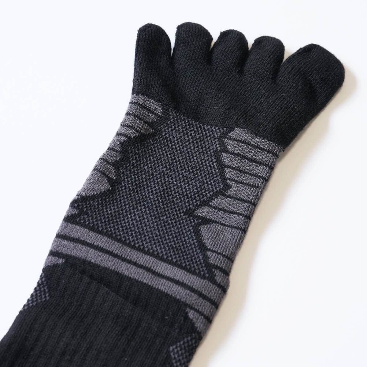 素材には耐摩耗性に優れる生地を採用し、5本指ソックスの弱点である穴あきに対する耐久性が格段にアップしています。