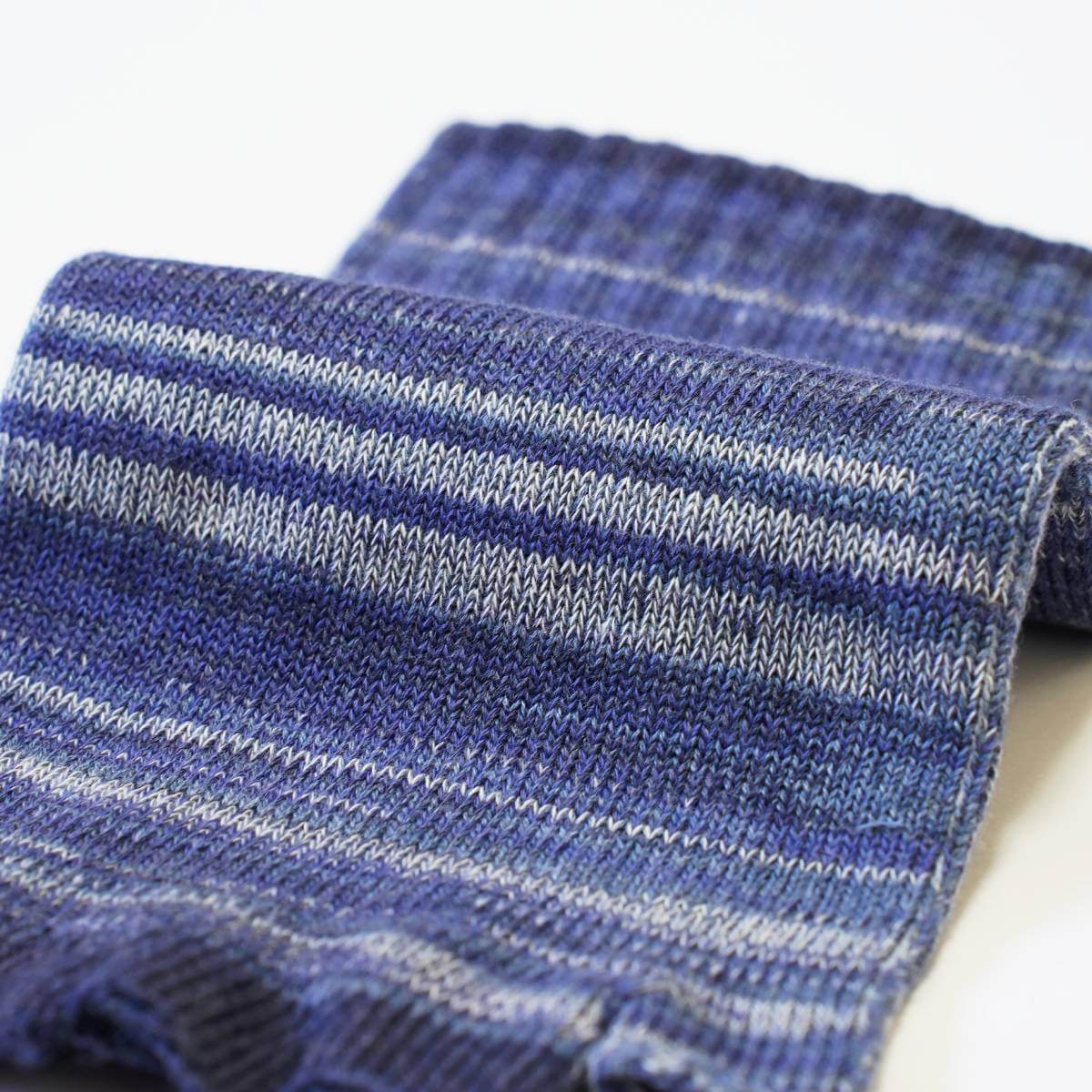 「ちゅら」とは、清らの沖縄訛りです。意味としては「清らか」と言うよりも「美しい」を表す場面で多く使われているので「ちゅら=美ら」という当て字も現在では普及。白く浮き立つさざなみをスラブ糸で編み込み、沖縄のマリンブルーをメランジで表現した直球のブルー。