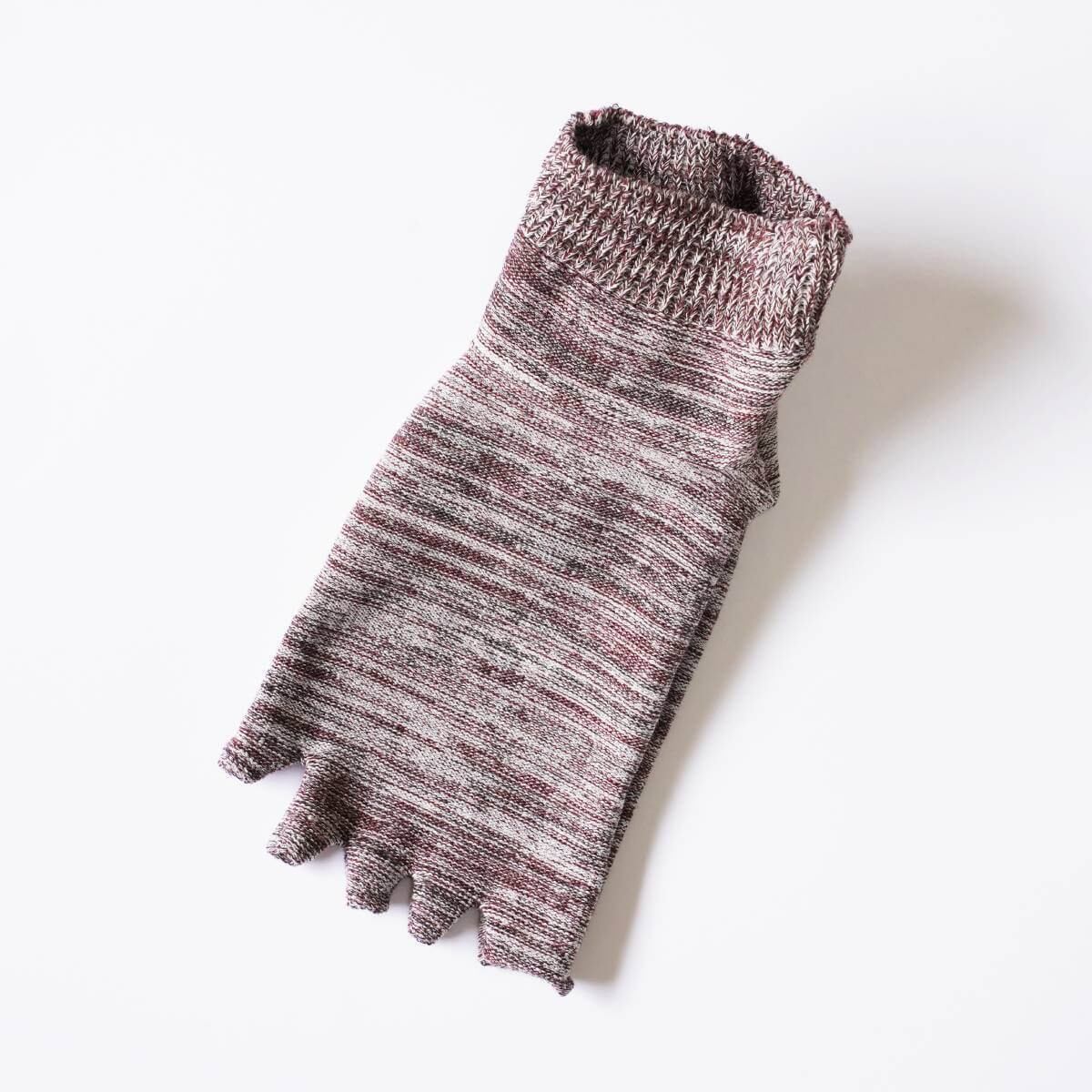 足を保護しつつ、指先が露出しているのでグリップが効いて踏ん張れるので、室内での運動やルームソックスとしても重宝します。
