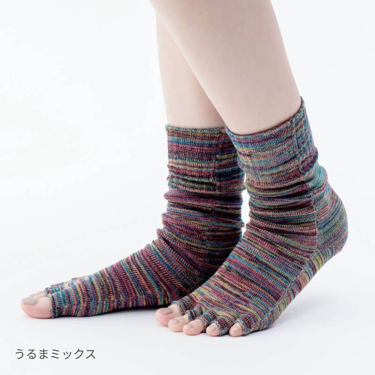 足を保護しつつ、指先が露出しているのでグリップが効いて踏ん張れるので、室内での運動やルームソックスとしても重宝します。