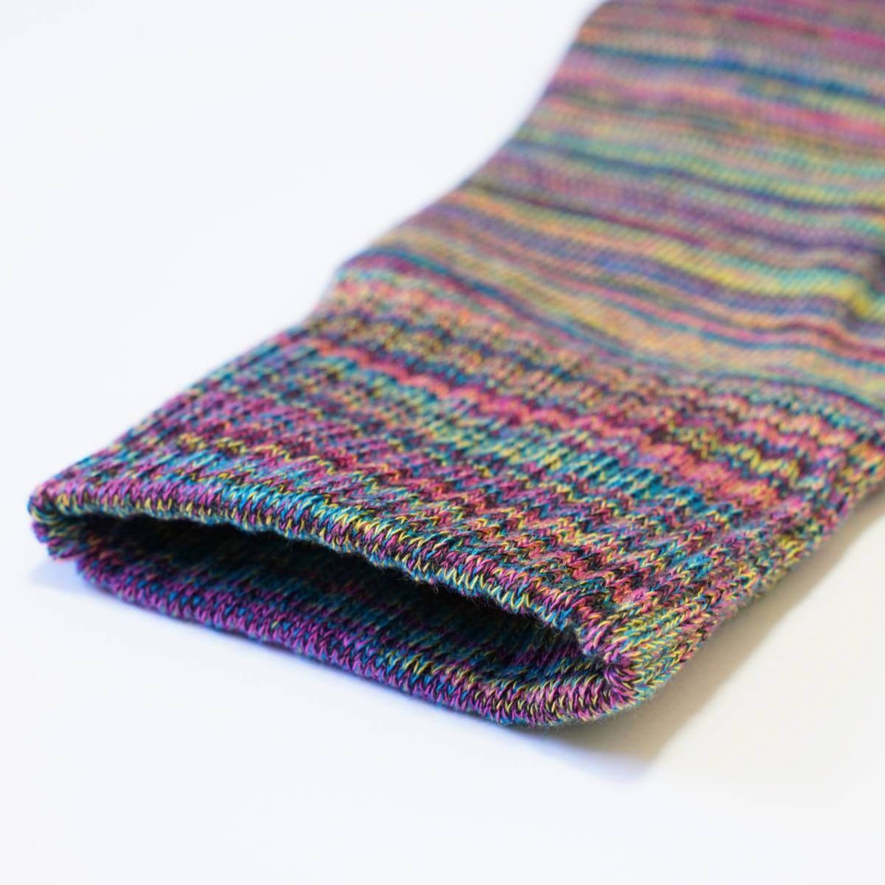 カラビサソックスは、景色、動物、果物など様々な沖縄にまつわるモチーフをメランジカラー(霜降り)で表現しています。