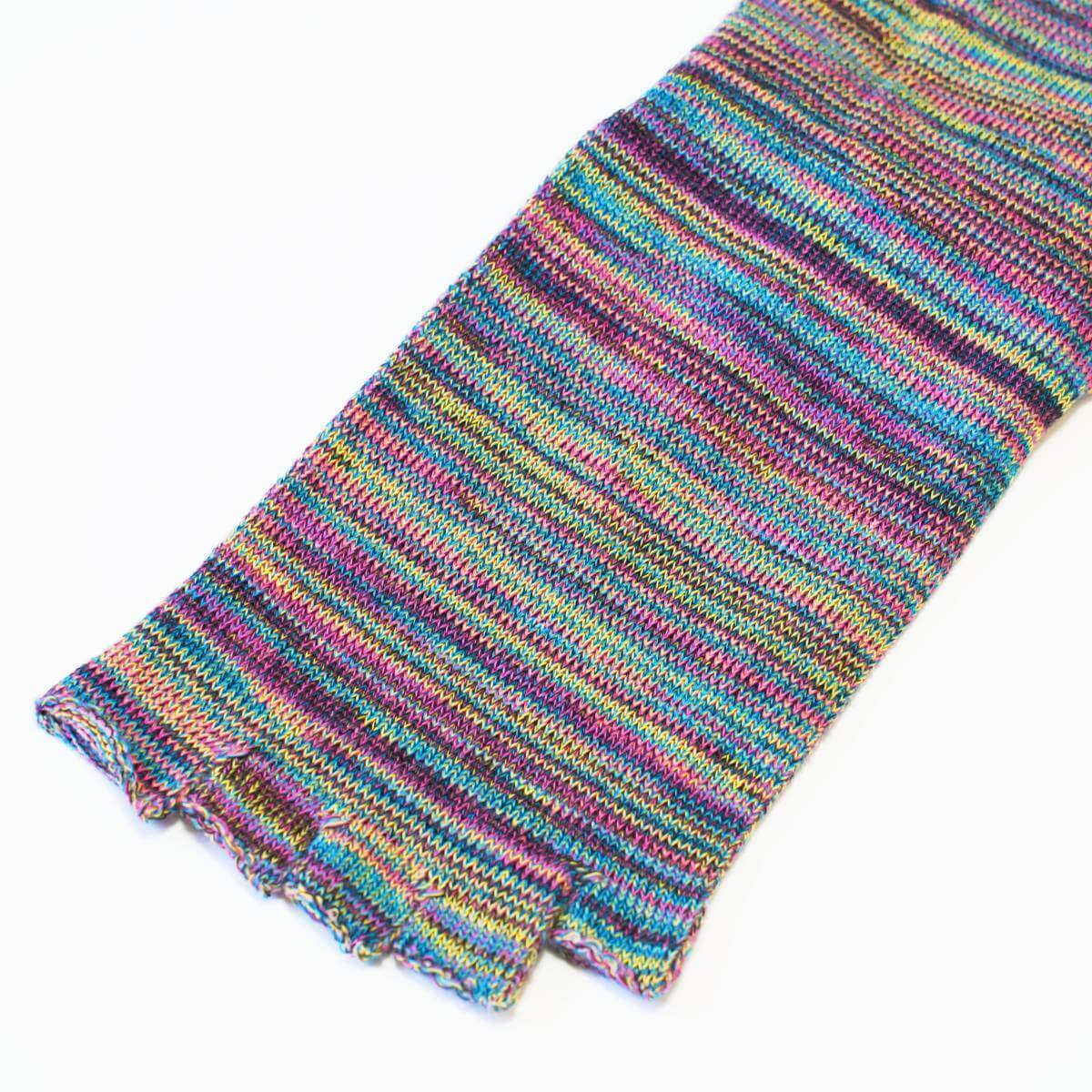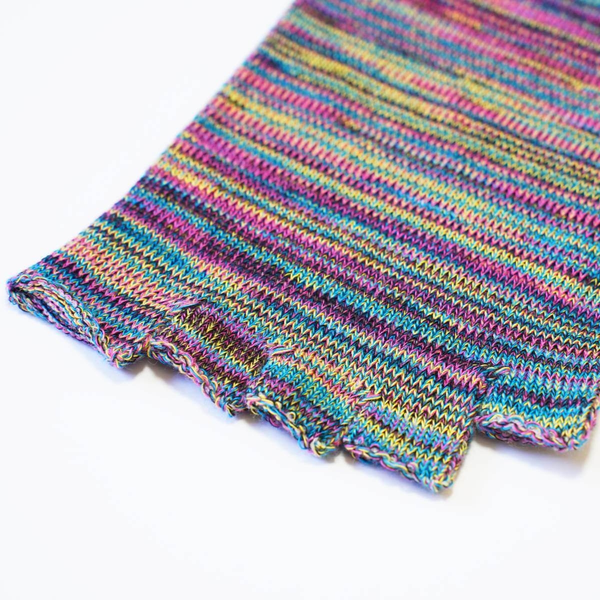 靴下を裏返すと指の間から数cmの糸が出ていますが、これは5本指靴下を編むために必要な遊び糸です。