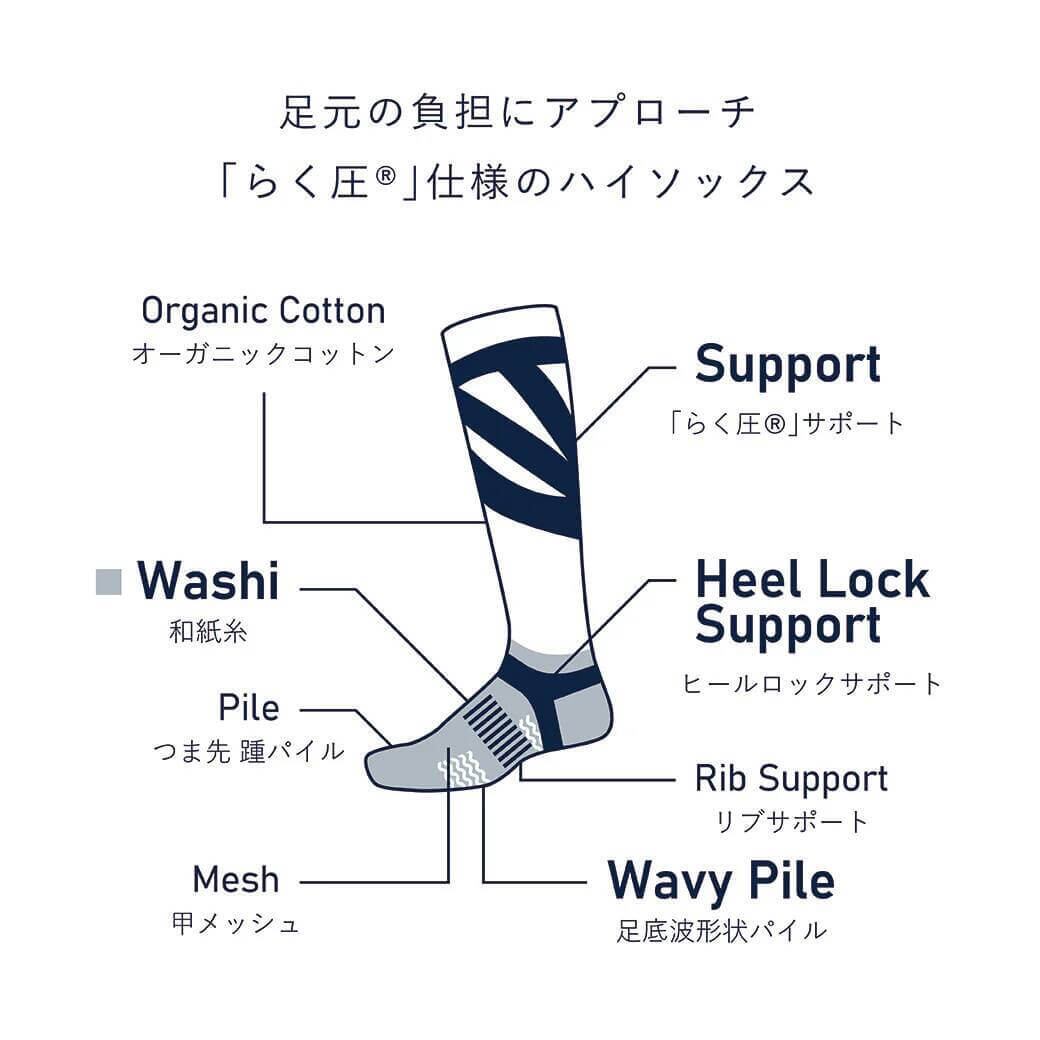 和紙がサラッと心地良いサポート力抜群のロング丈ソックス。