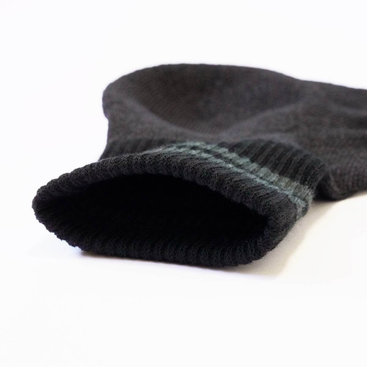 通常の靴下よりも踵を大きく編んでいること、踵まわりにヒールロックサポートを入れたことで、足の形にしっかりとフィットします。