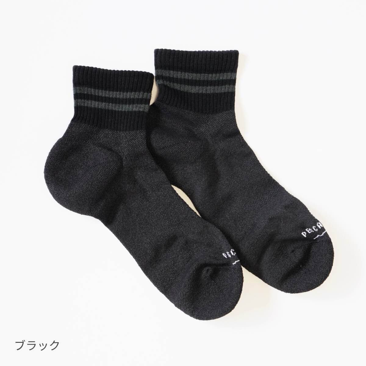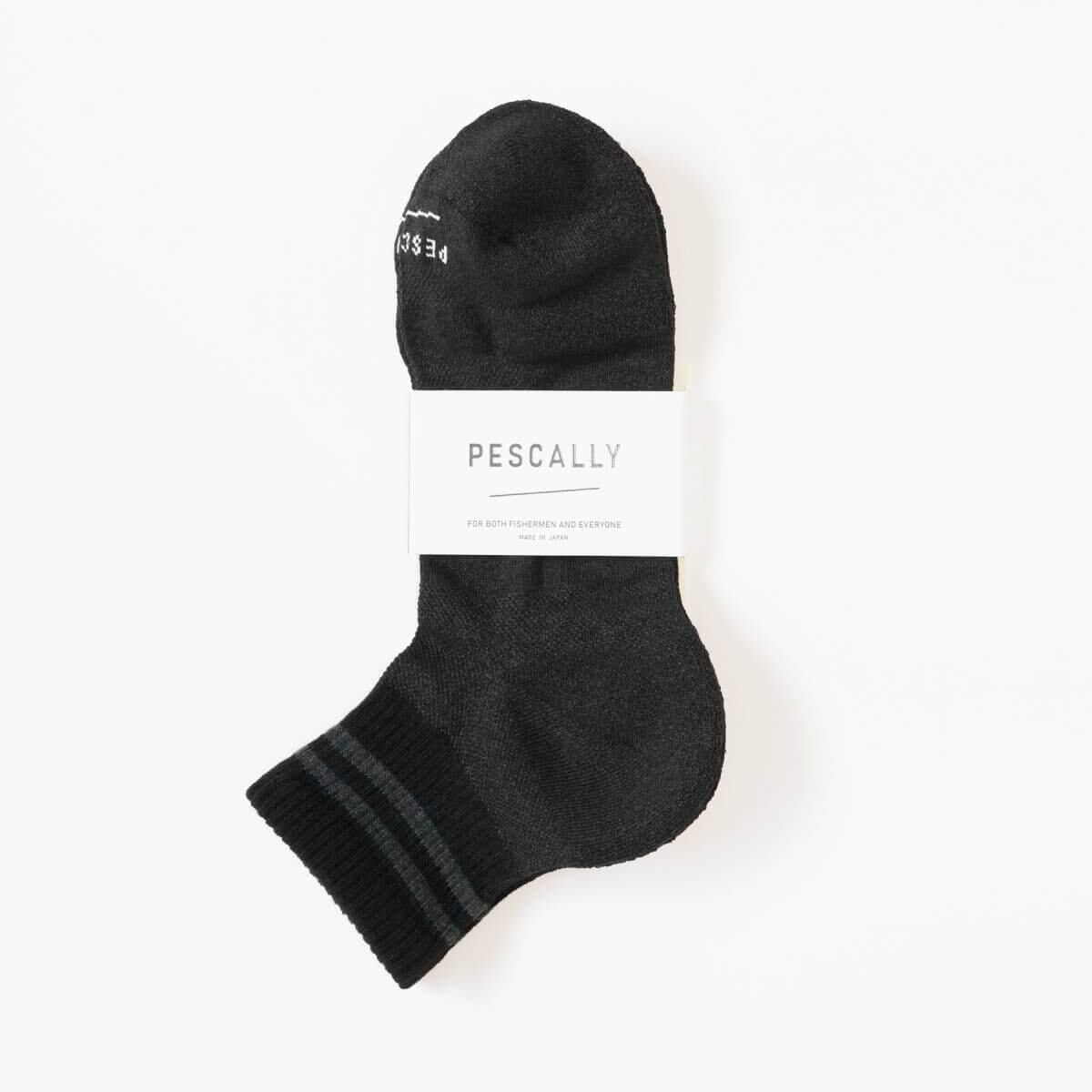 PESCALLYの特徴である吸水速乾性はそのままに、暑い季節を乗り越える薄手仕様+短め丈で夏場のムレにも効果的で快適な履き心地です。