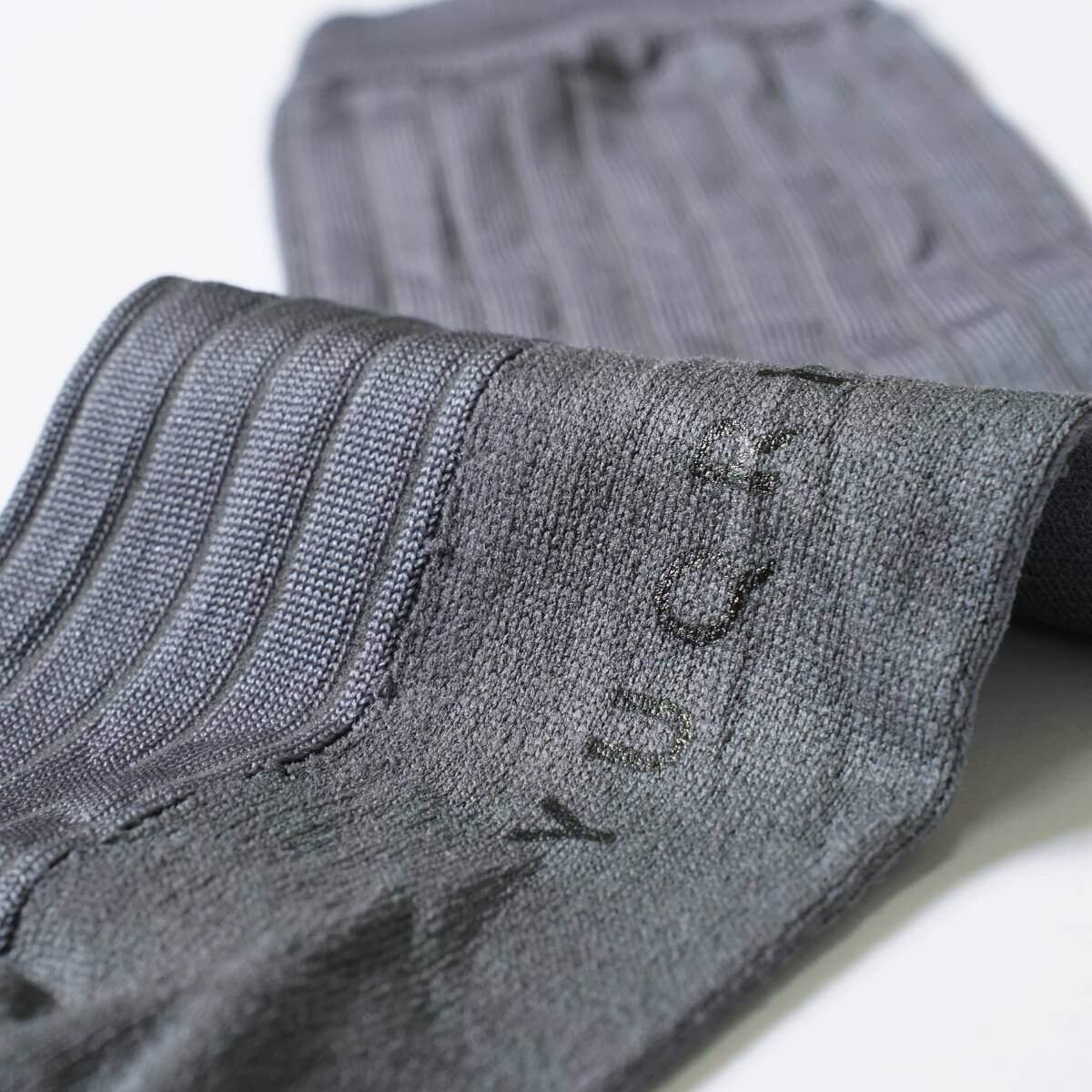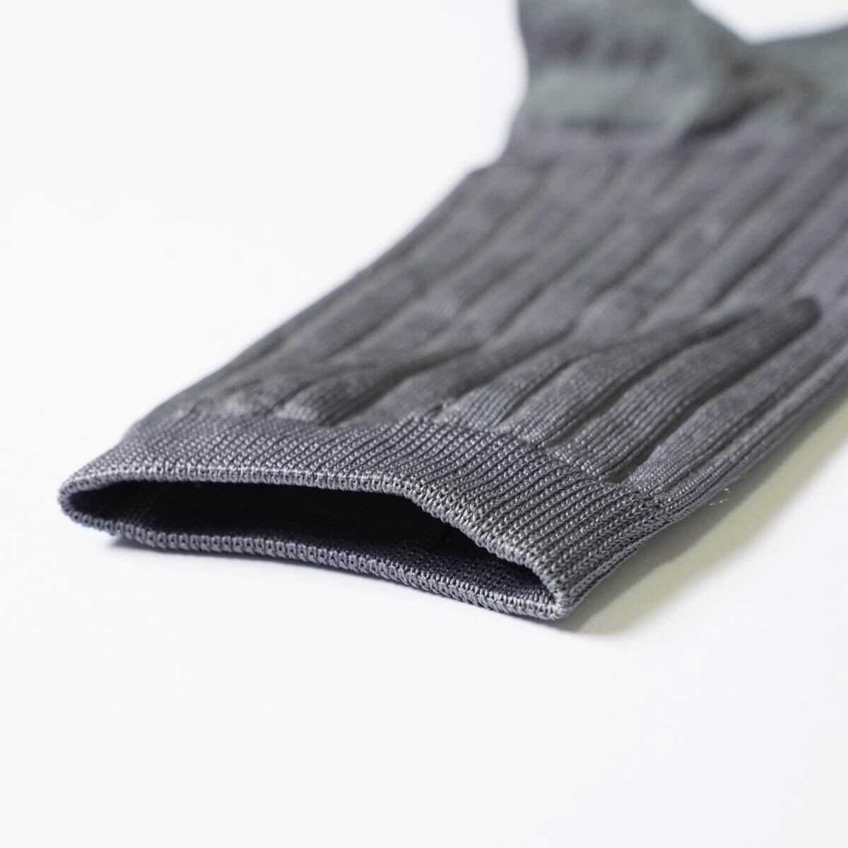 ツルッとしたハイゲージの靴下でありがちな革靴を履いた際の滑りも軽減します。