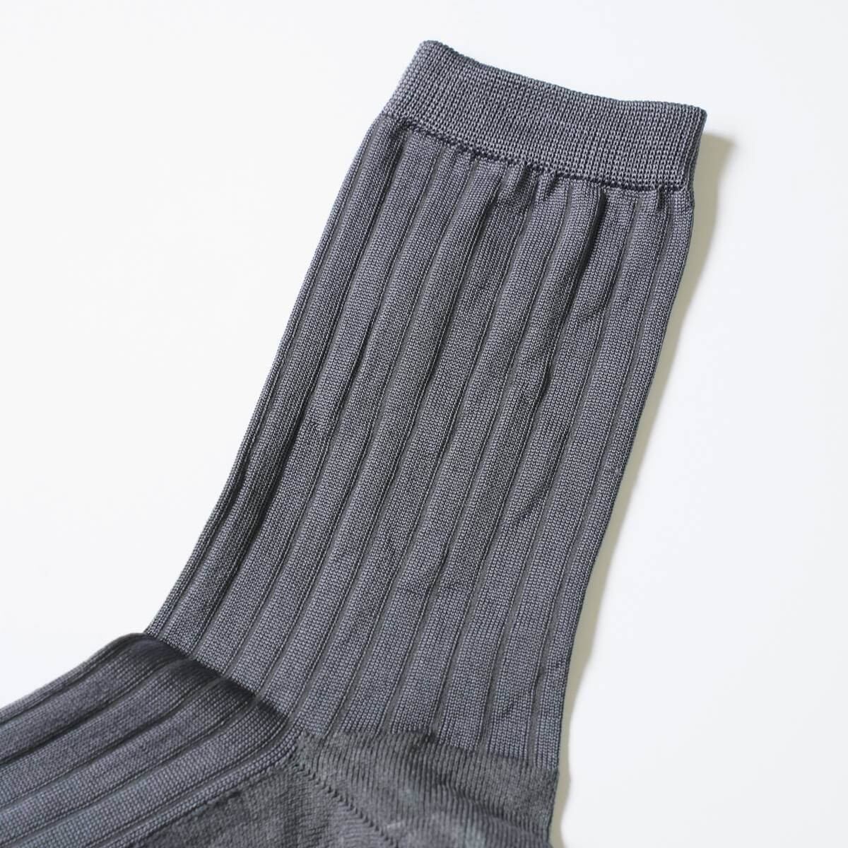 時間をかけ、ゆっくりと整った編み目を作り上げることで艶やかで洗練されたソックスに仕上がっています。