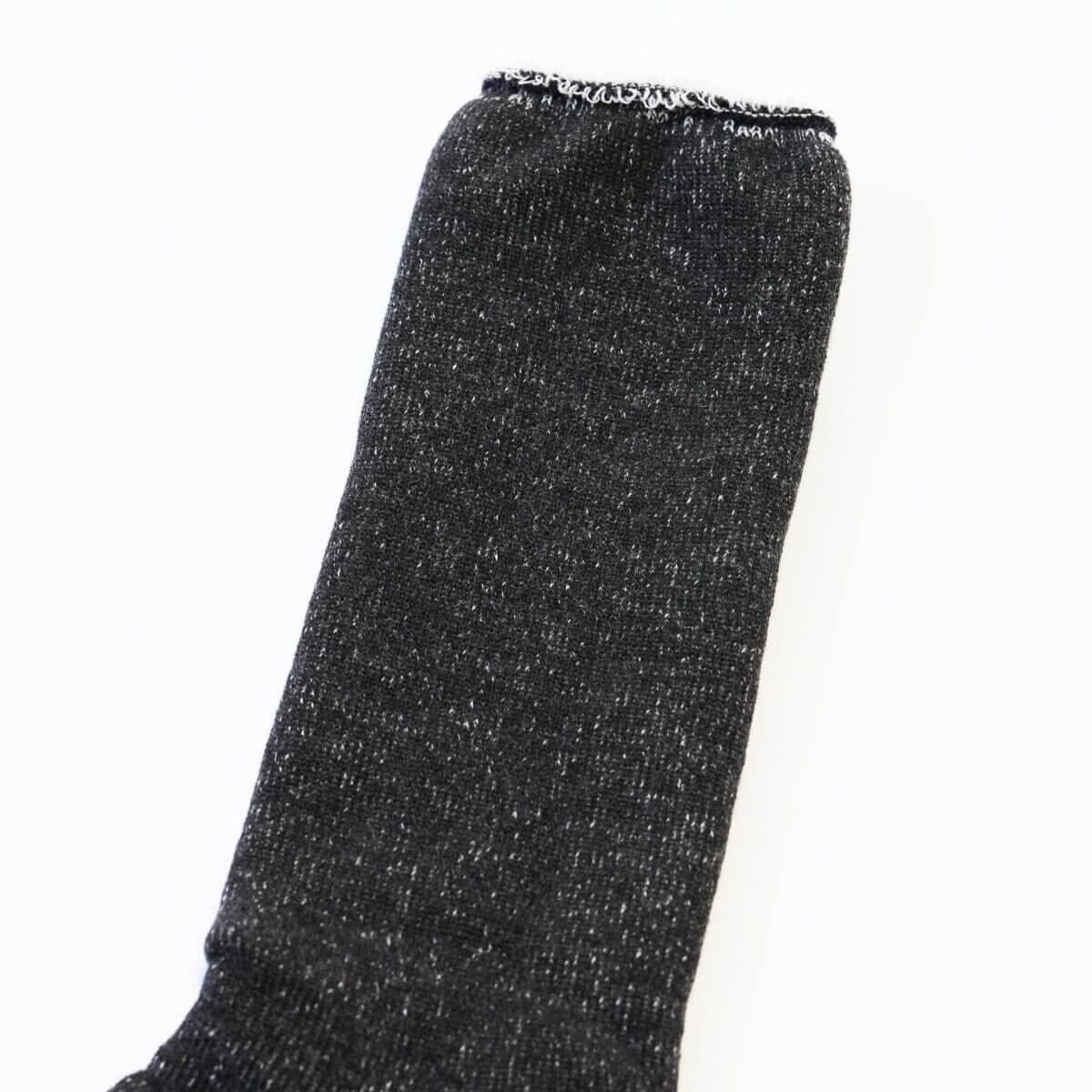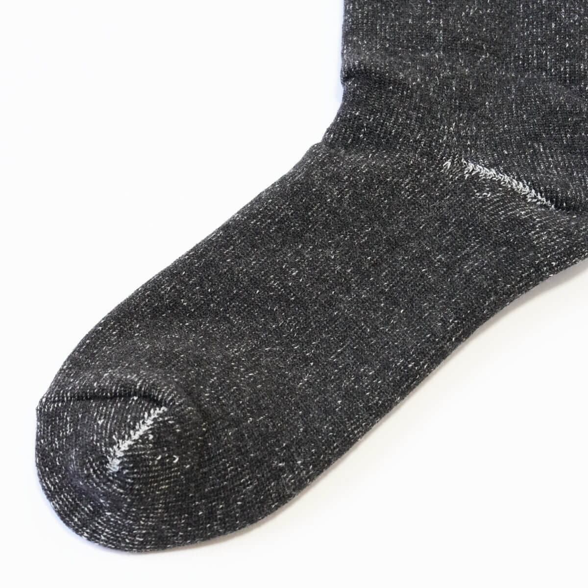 肌側にパイル地のメリノウール、表側に丈夫なコットンを使用したパイルソックス。