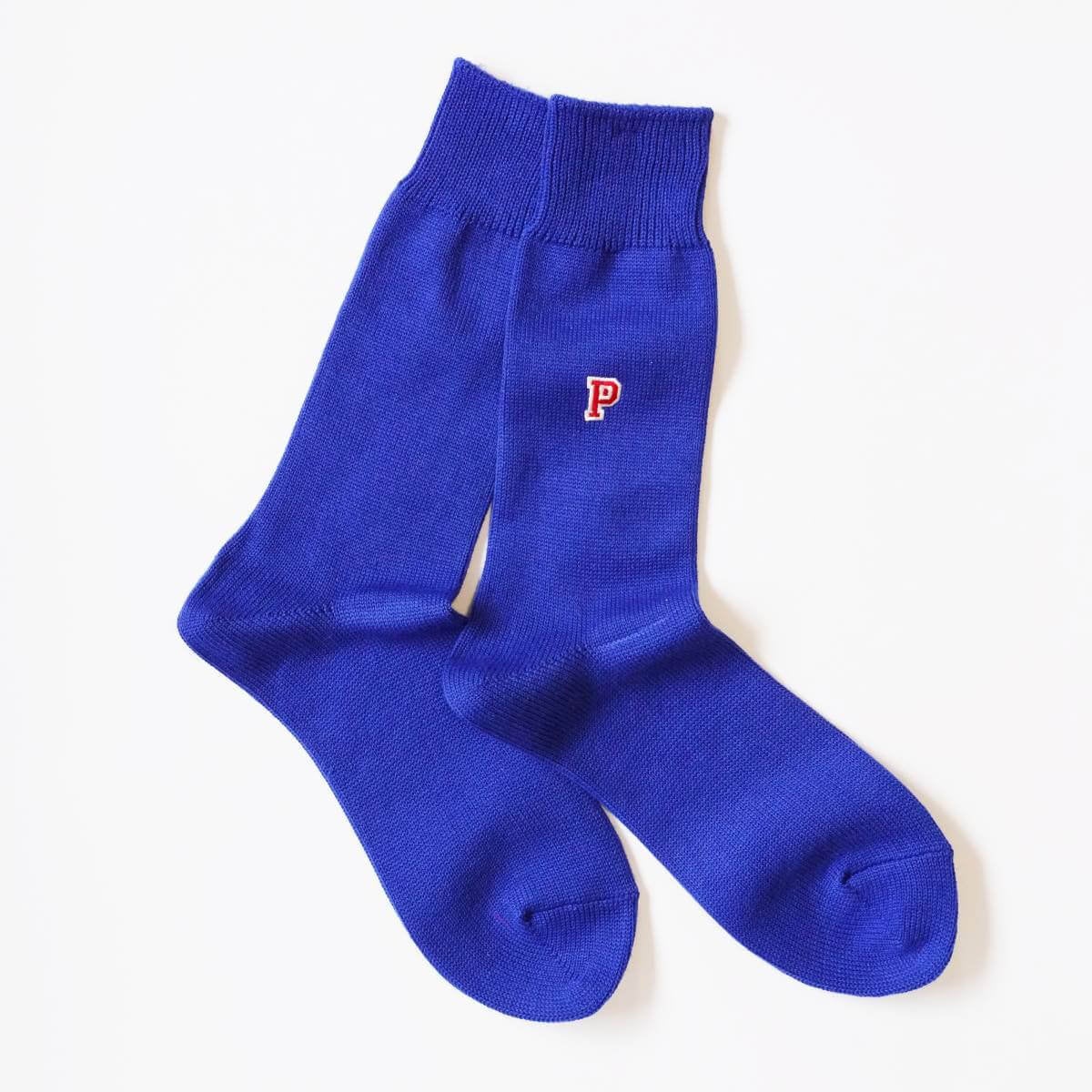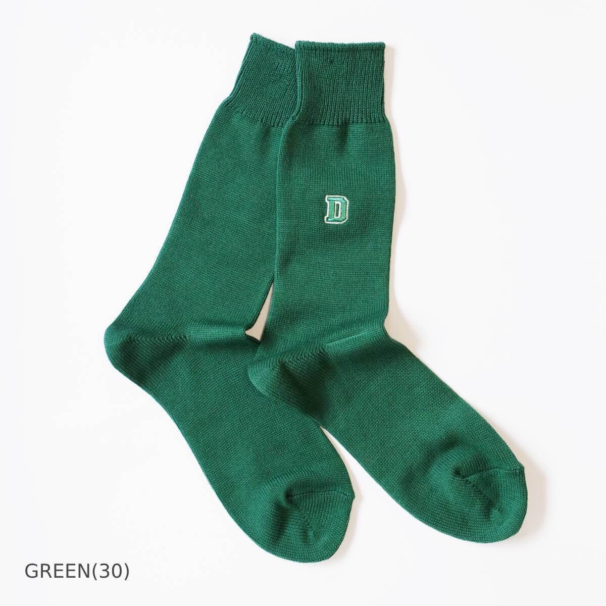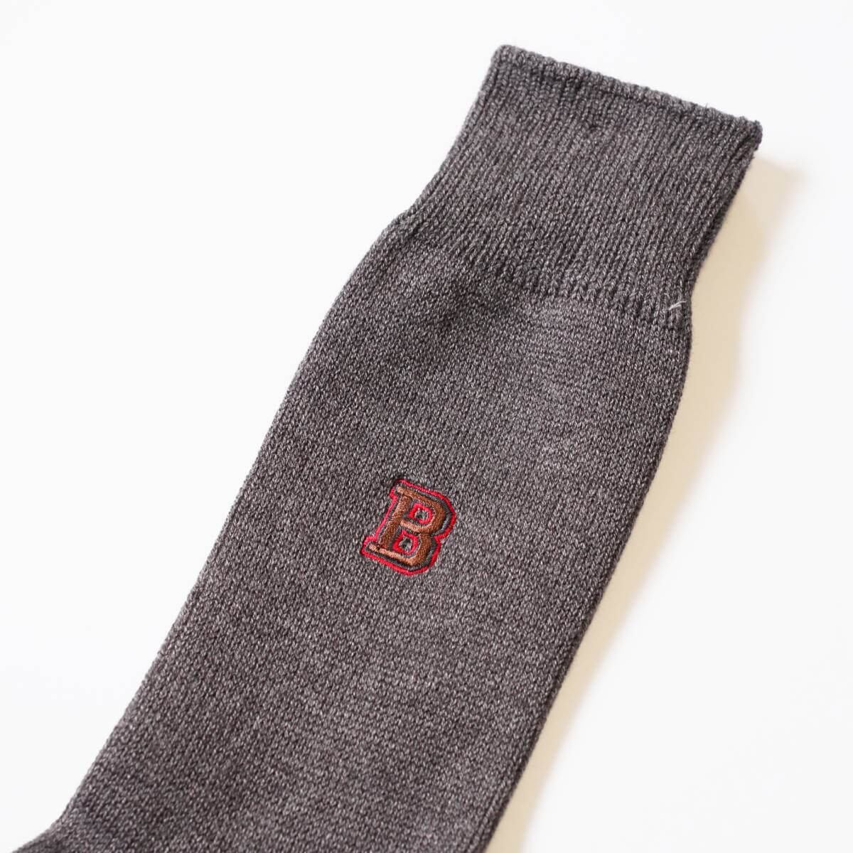 さりげないワンポイントのレタリング刺繍がオシャレな靴下。
