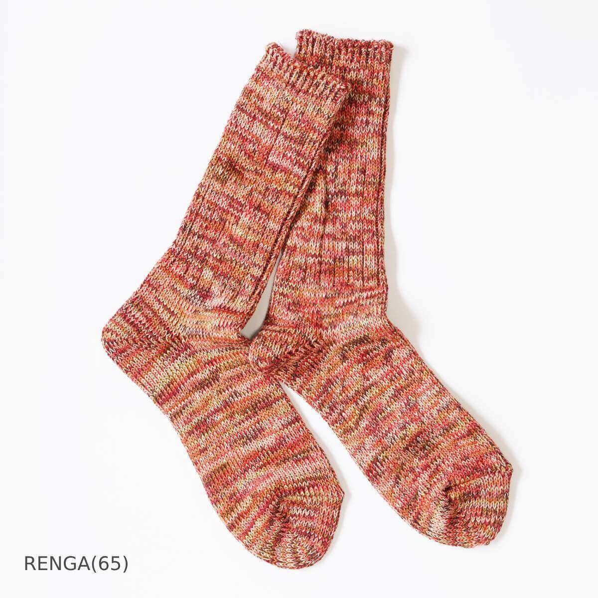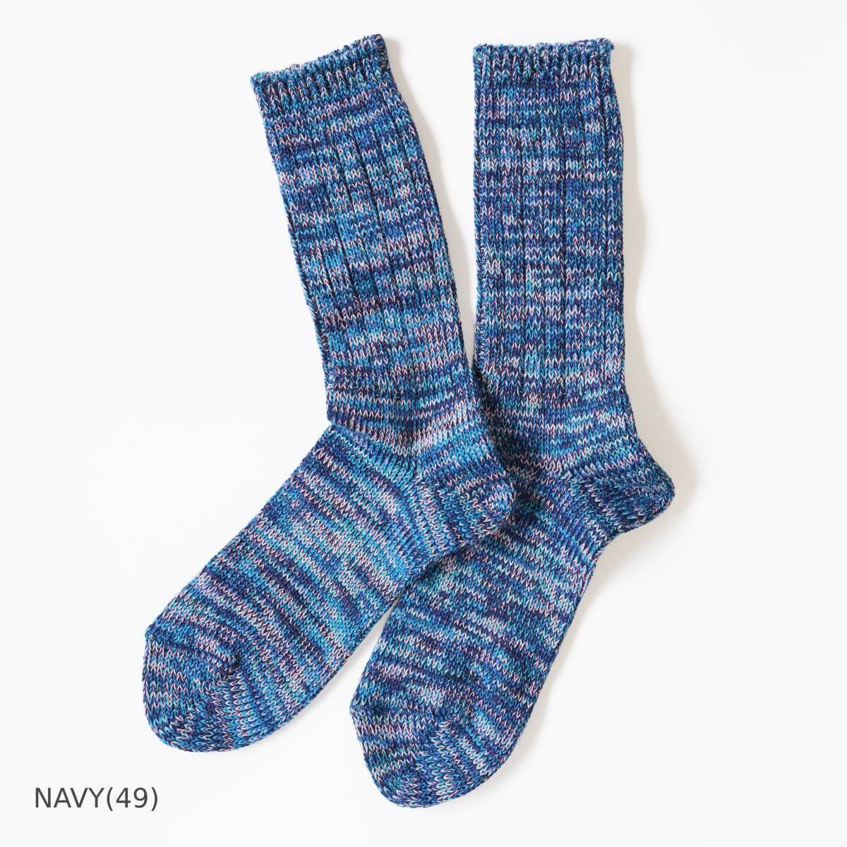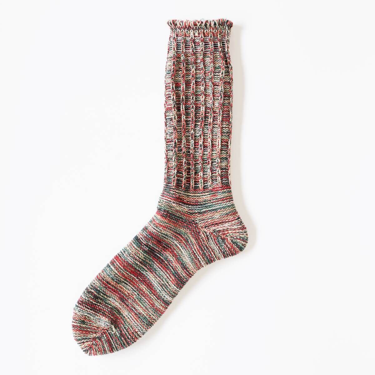 5色の糸を使ったアノニマスイズムのミックスカラーソックス「5カラーMIXクルー」。