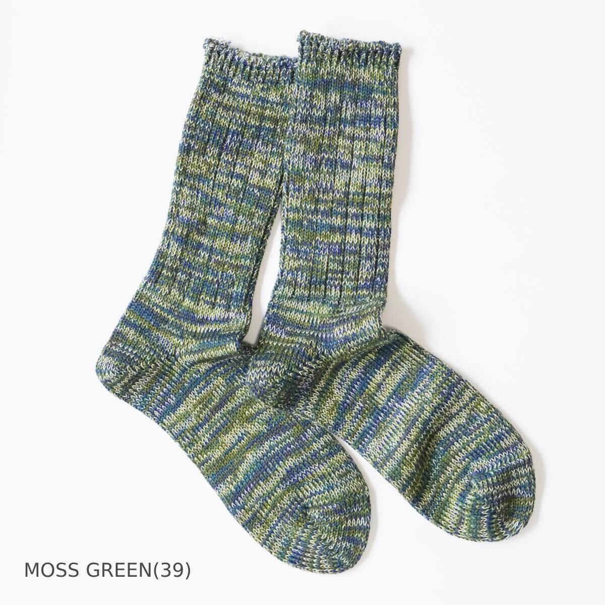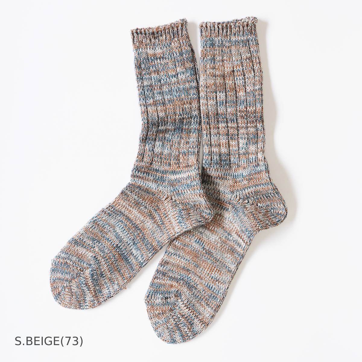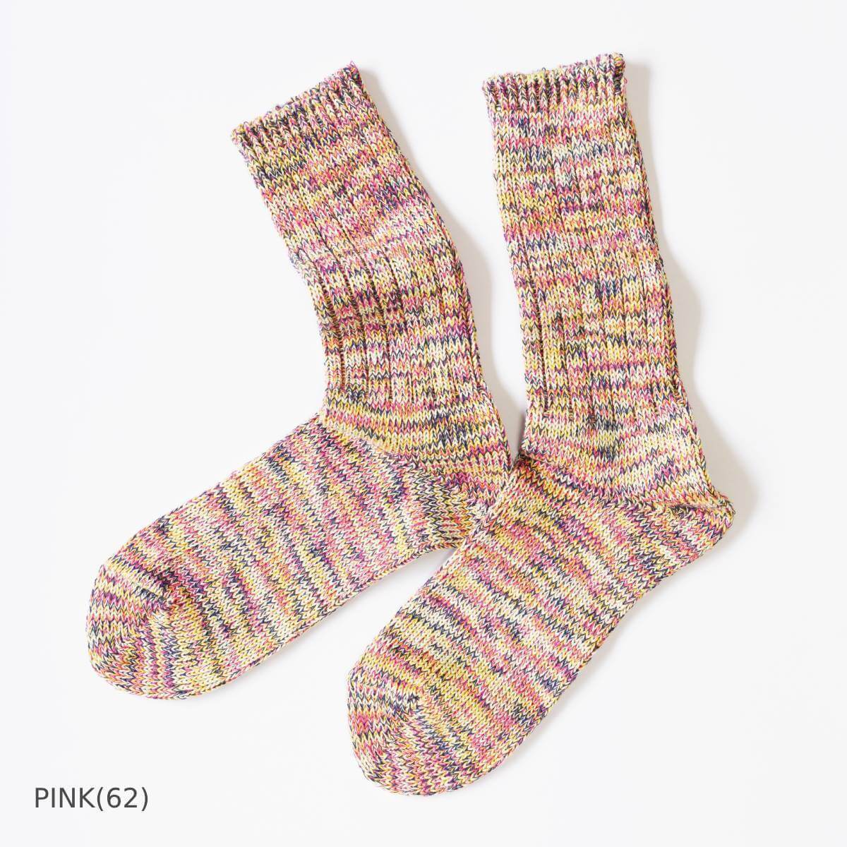 5色の糸を使ったアノニマスイズムのミックスカラーソックス「5カラーMIXクルー」。