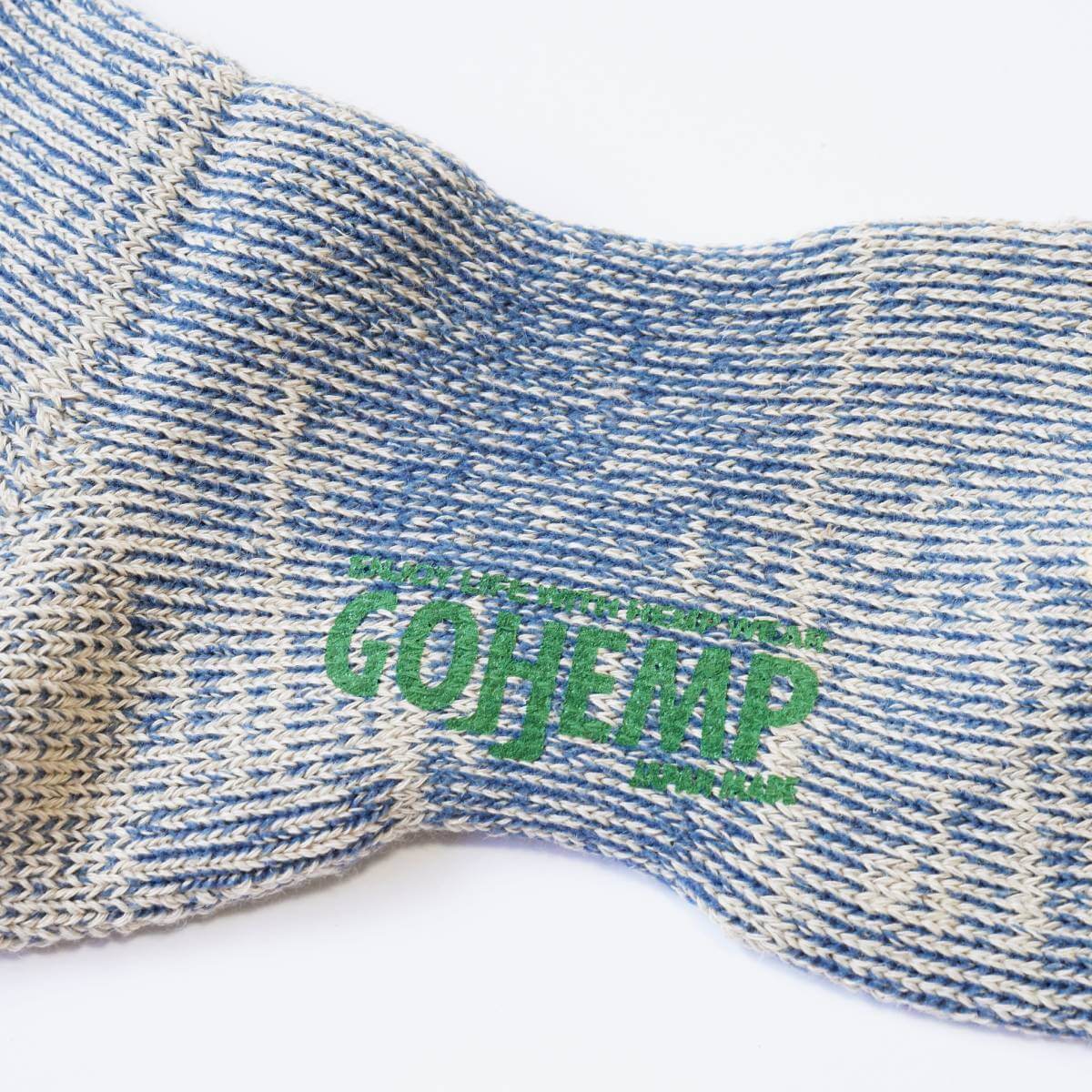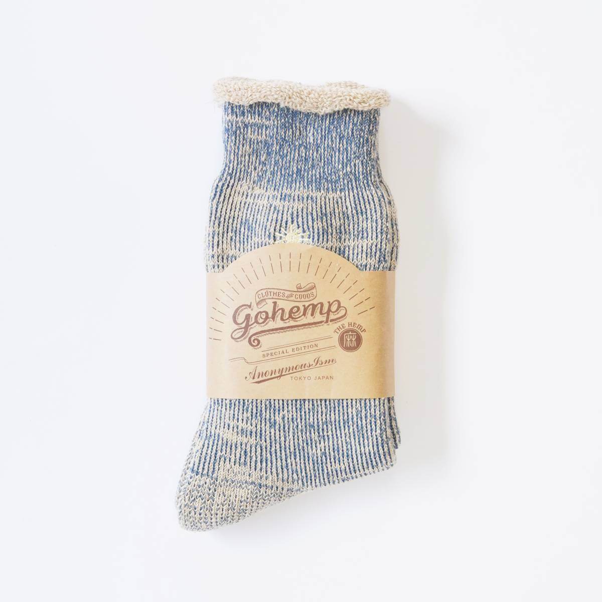 アノニマスイズムと国内初のヘンプアパレルブランドとしてヘンプ素材にこだわったブランドGOHEMP(ゴーヘンプ)とのコラボソックス「GO HEMP ローゲージパイルクルーソックス」。