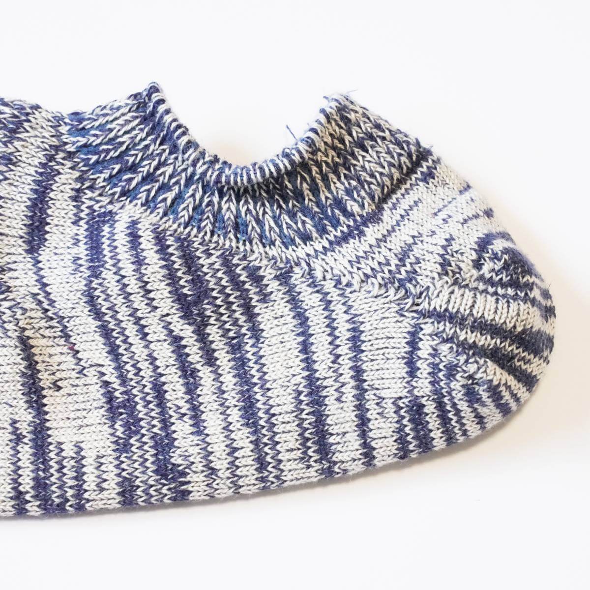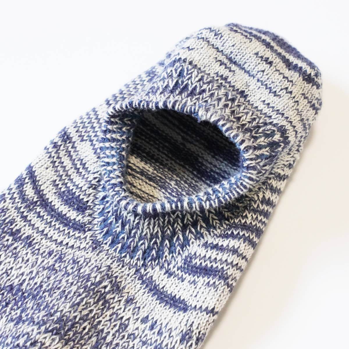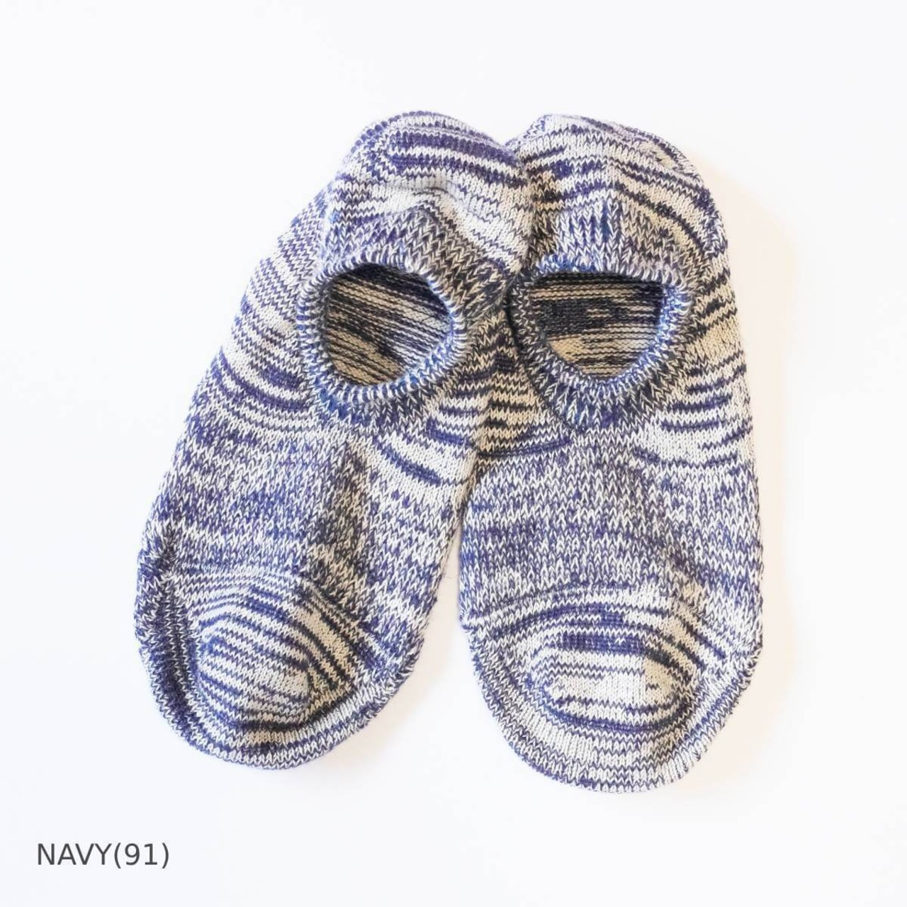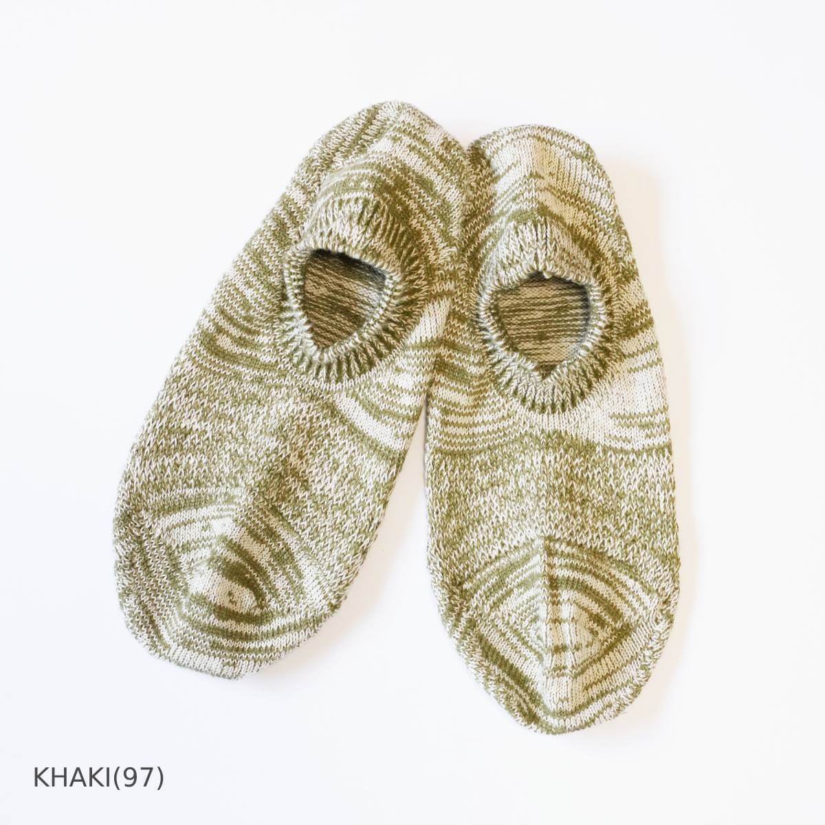 コットン×ヘンプ素材で編み立てたシンプルで落ち着いた色合いのスラブ調のカバーソックス。