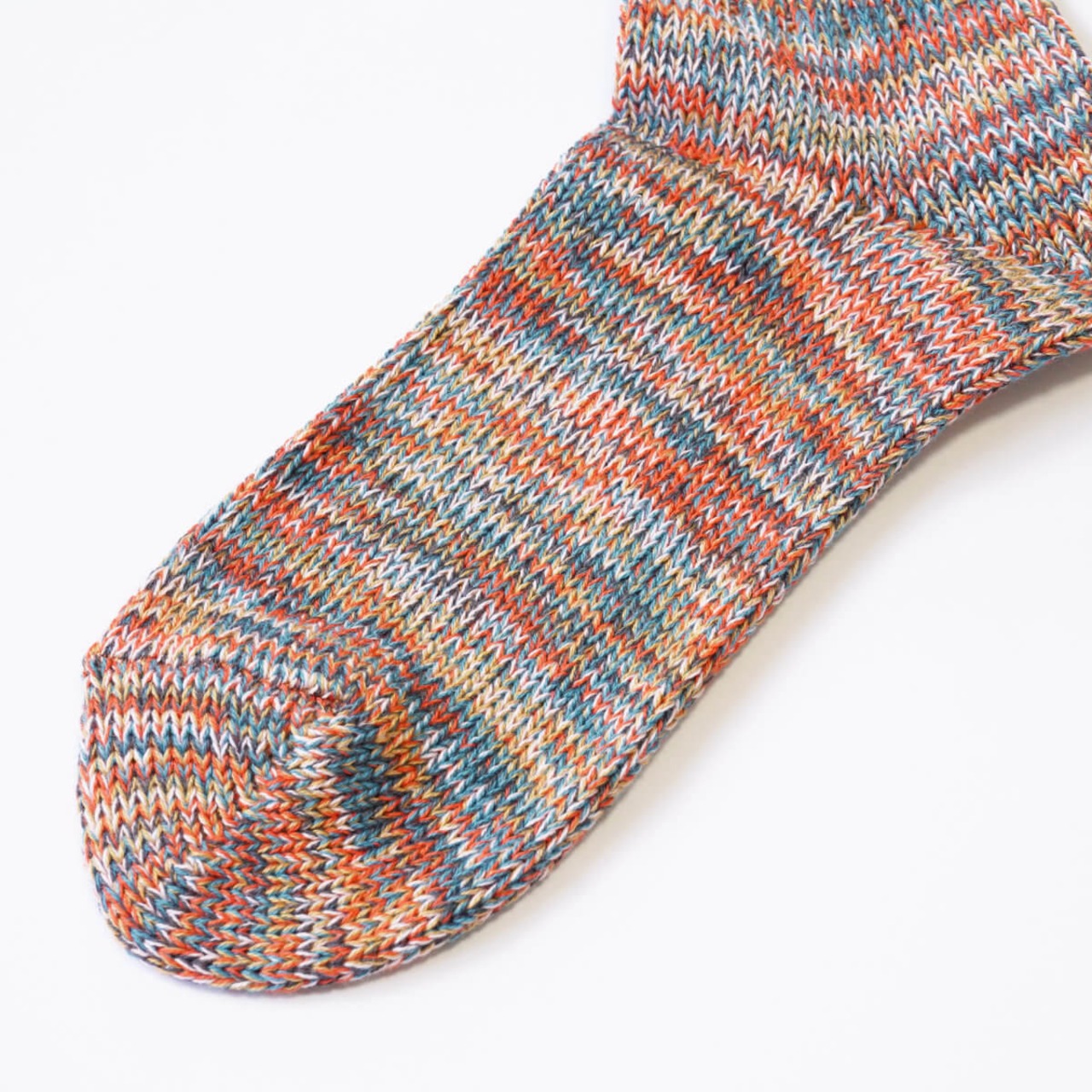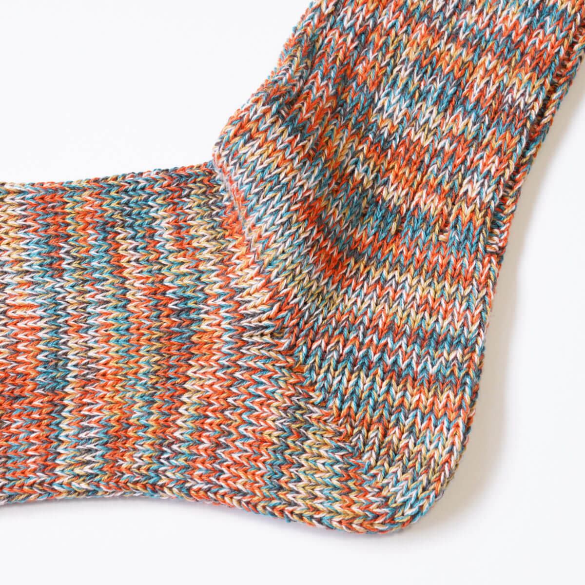 5色の糸を使ったアノニマスイズムのミックスカラーソックス「5カラーMIXクルーソックス」。