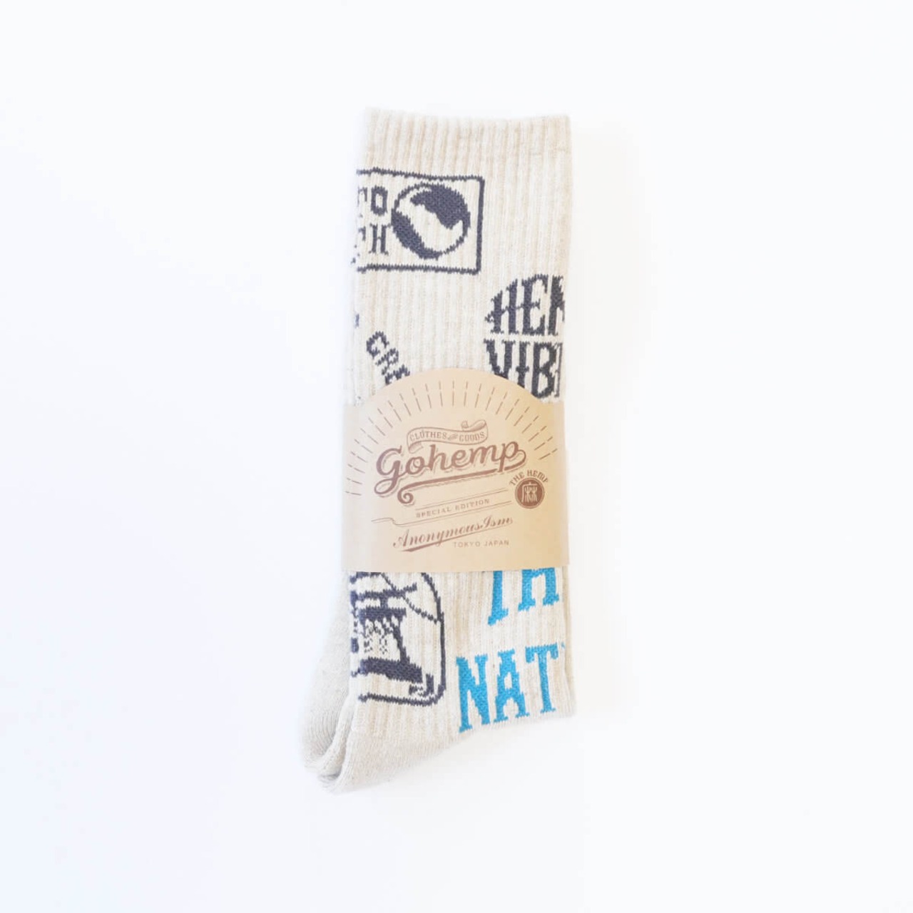 アノニマスイズムと国内初のヘンプアパレルブランドとしてヘンプ素材にこだわったブランドGOHEMP(ゴーヘンプ)とのコラボソックス。