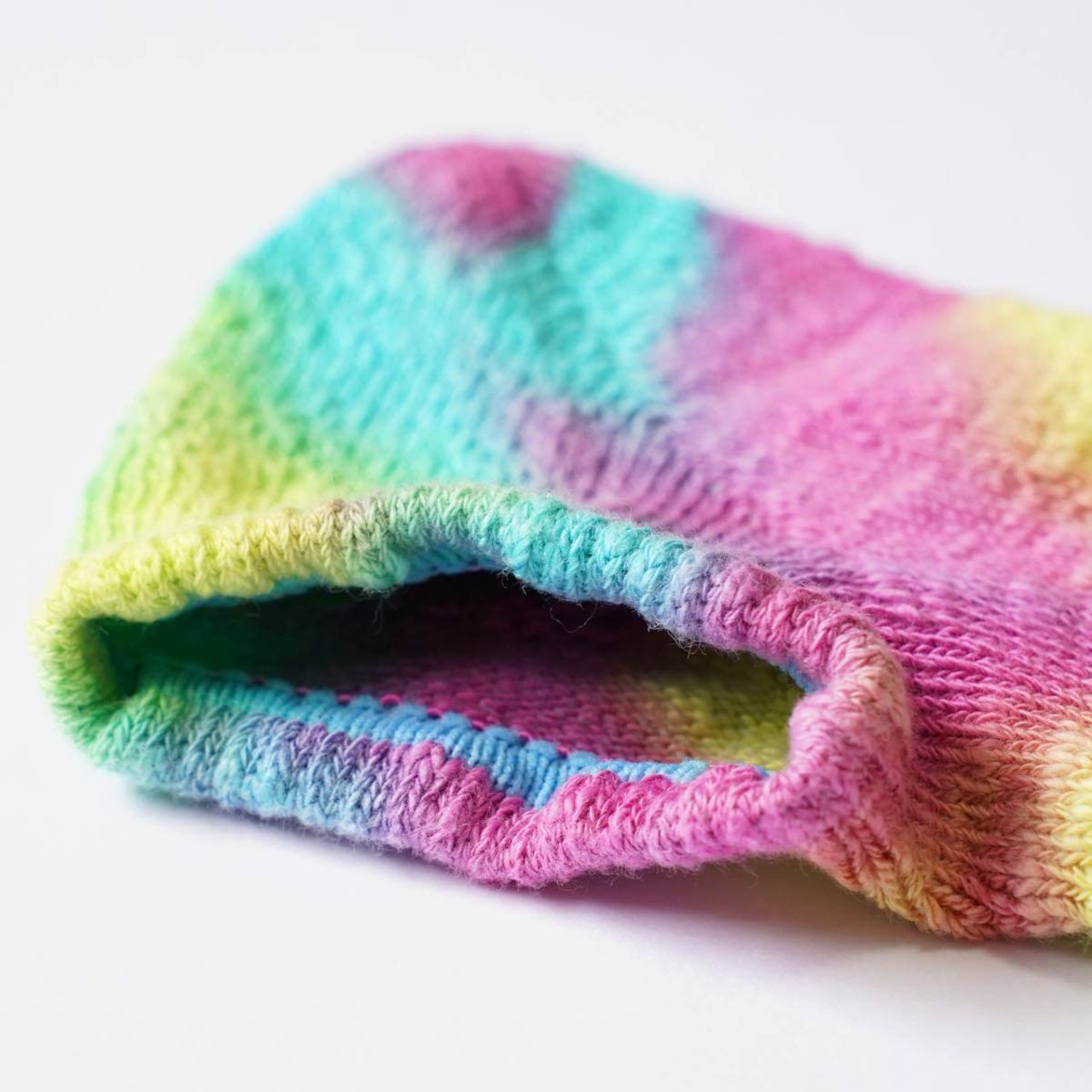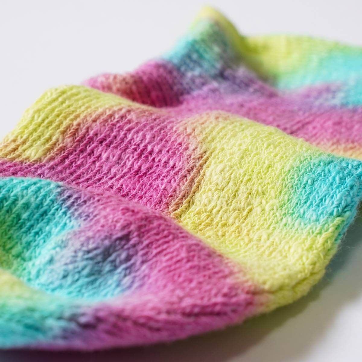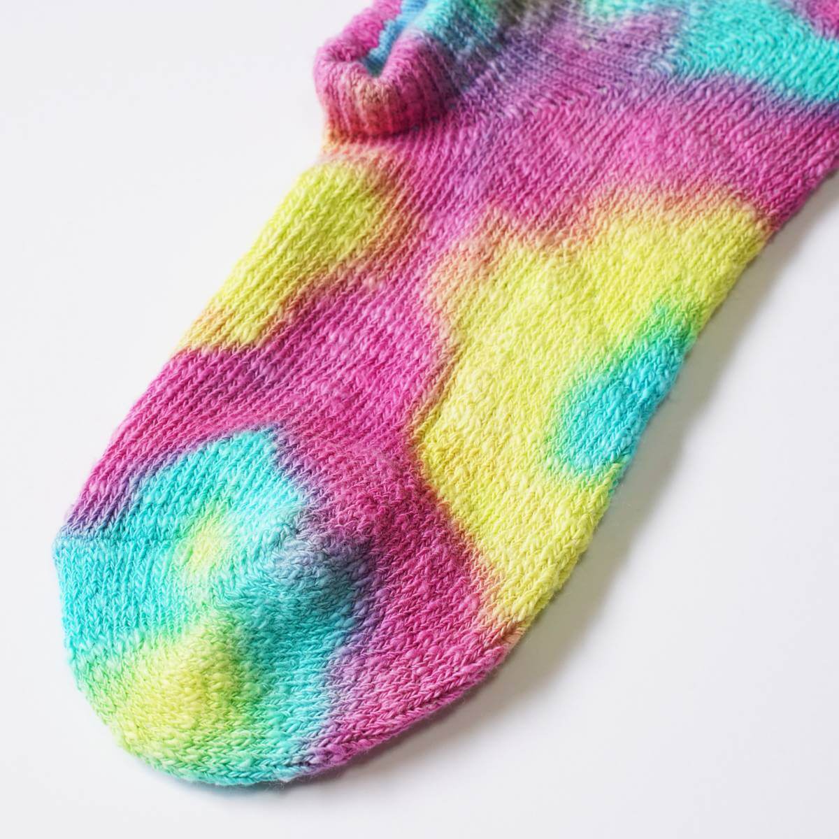 鮮やかなタイダイ染めがスタイリングのアクセントに映える靴下です。