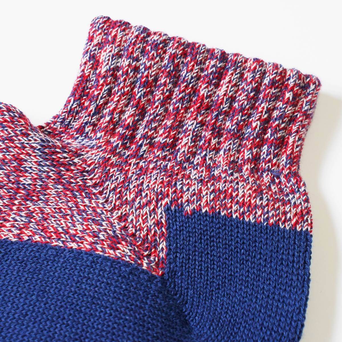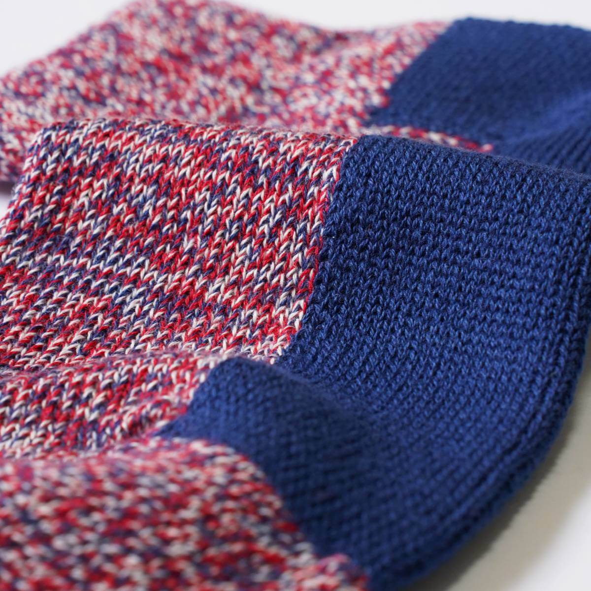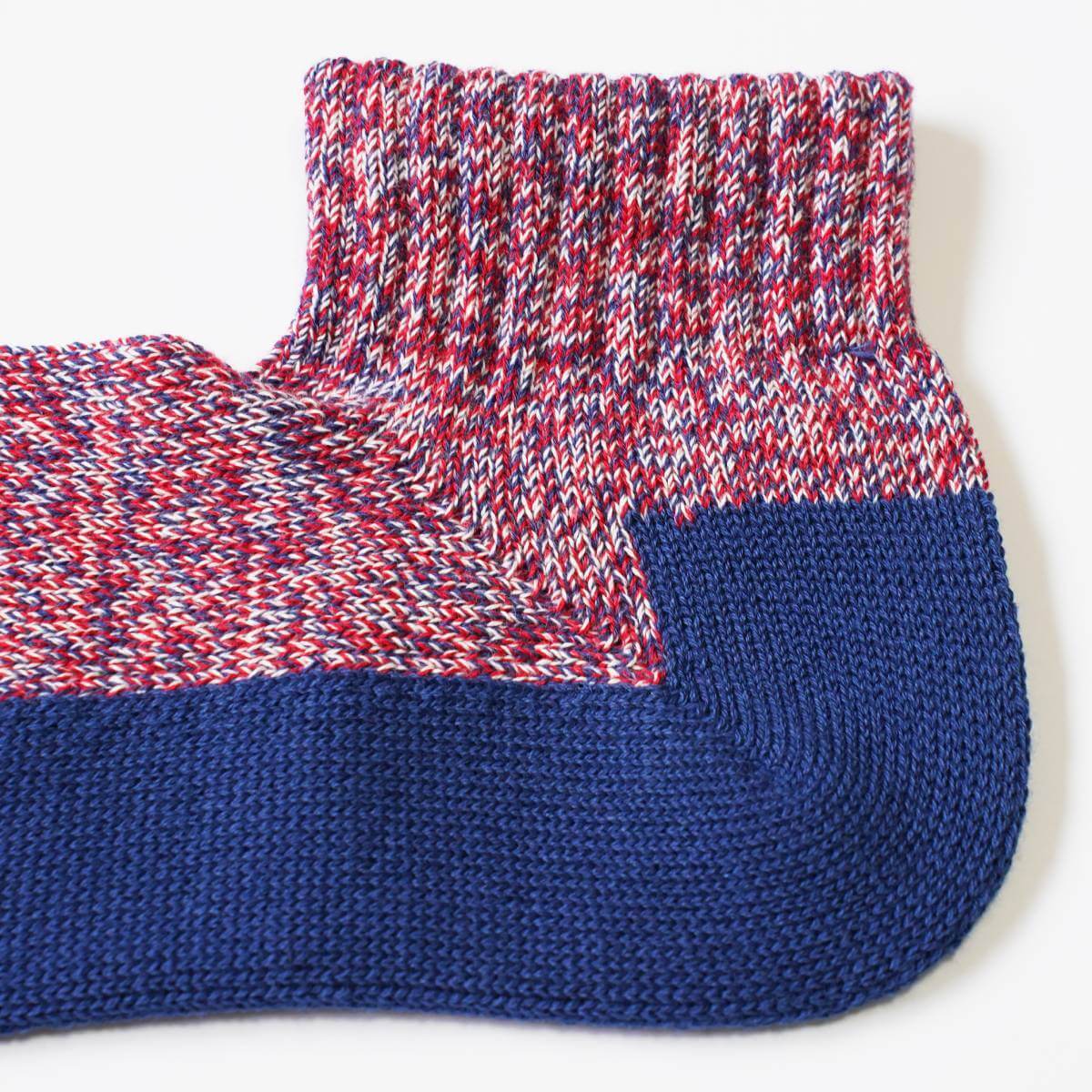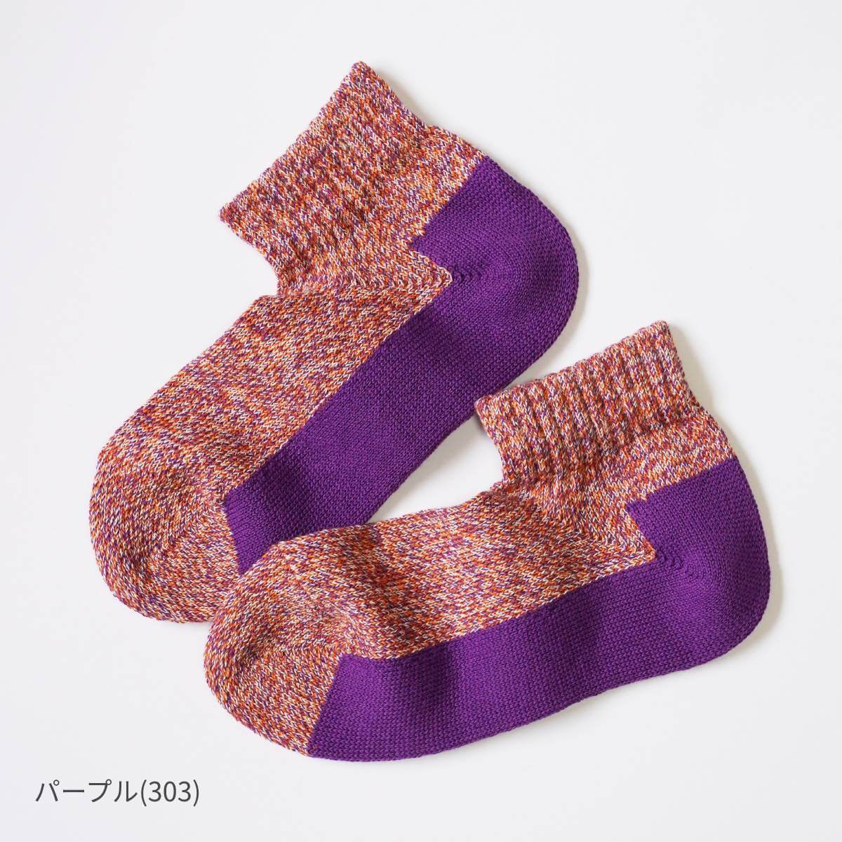 発色の美しい綿100%のコーマ糸を彩り豊かにブレンドして編立てたアンクルソックス。
