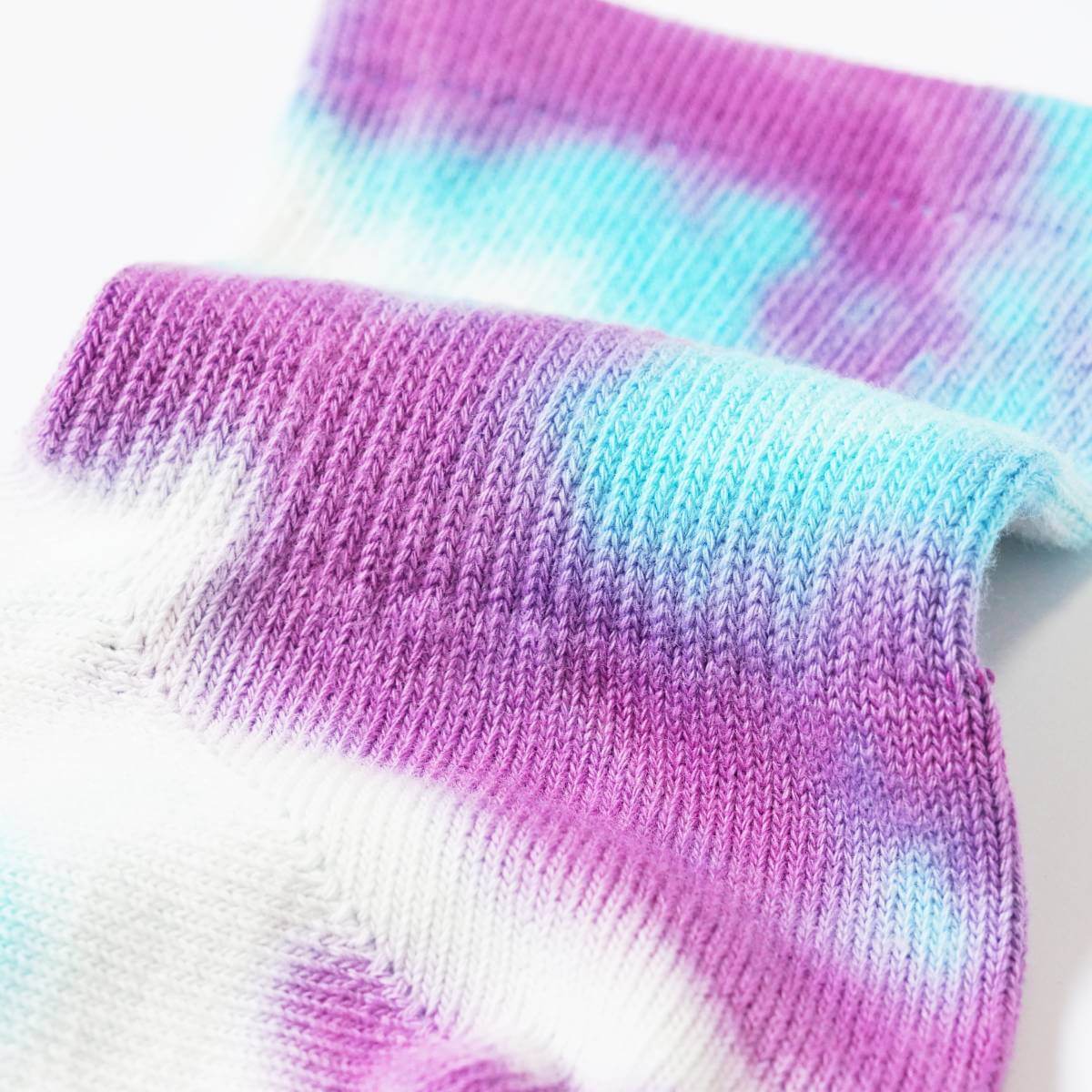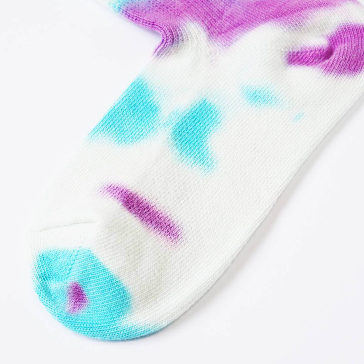 鮮やかなタイダイ染めがスタイリングのアクセントに映える靴下です。
