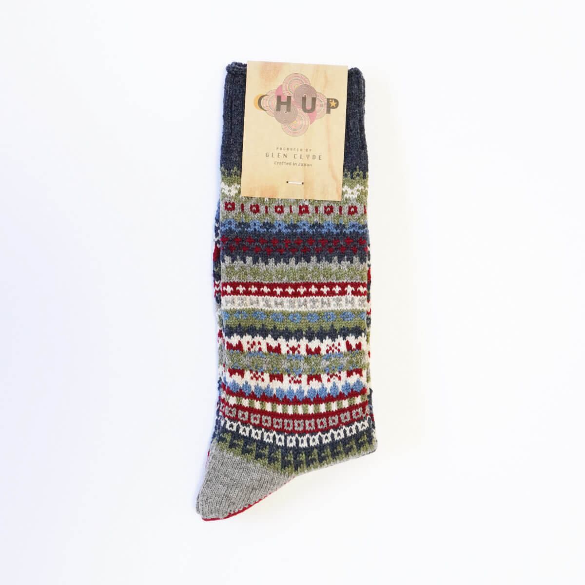 CHUP by GLEN CLYDE チュプ グレンクライド PORTMEIRION ポートメイリオン 0541 靴下 クルーソックス ユニセックス レディース メンズ 日本製 メリノウール 総柄