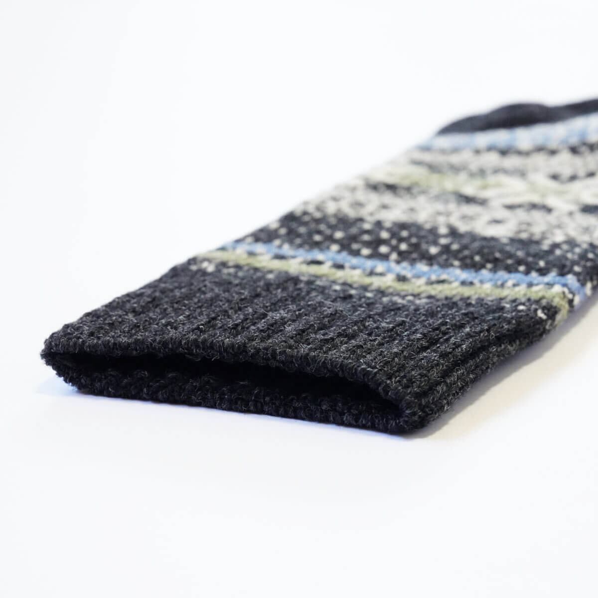 デザインや柄が非常に複雑な為、生産効率が通常の半分から3分の1程度と作れる量に限りがあるため大量生産できない貴重な靴下です。
