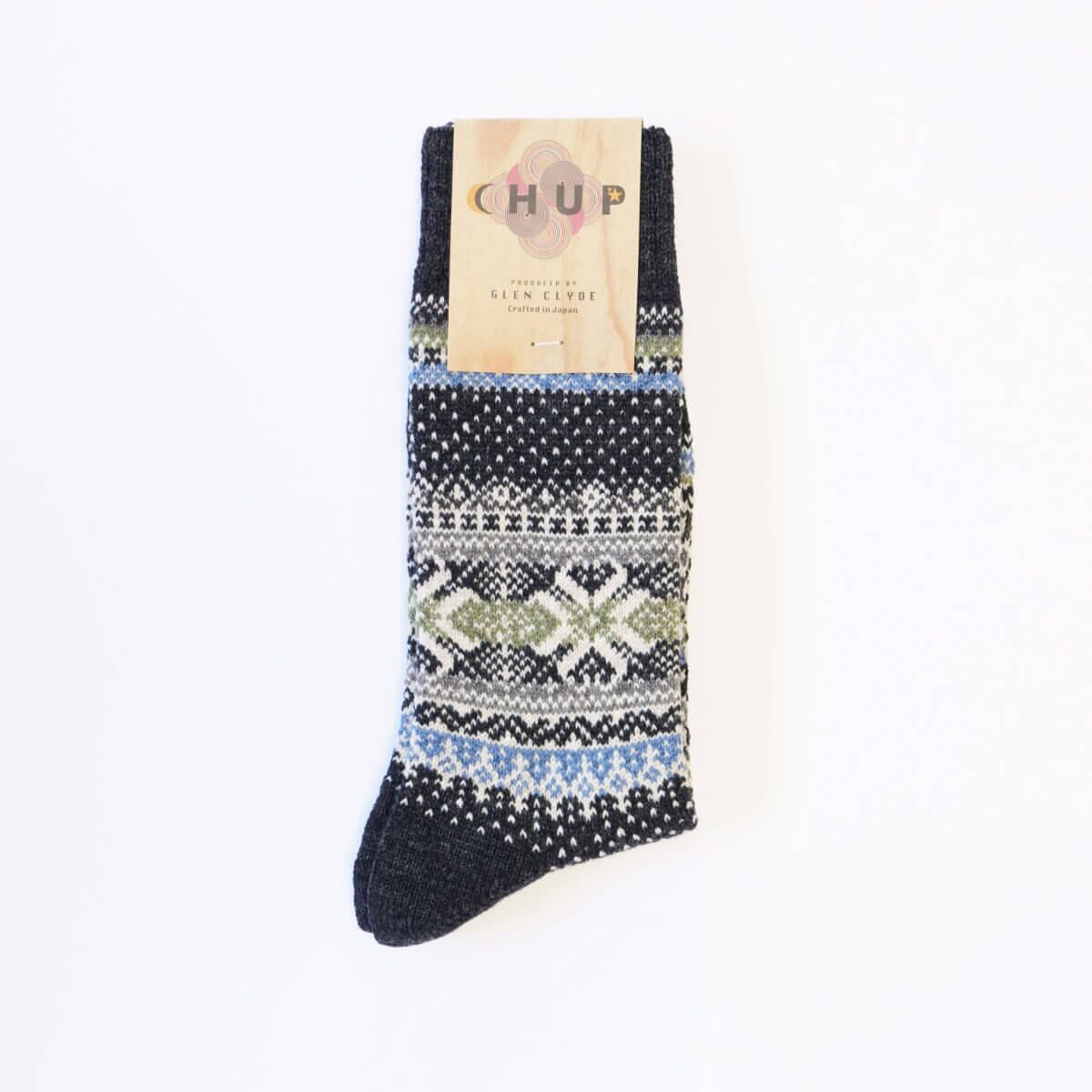 CHUP by GLEN CLYDE チュプ グレンクライド HANSKER ハンスカー 0544 靴下 クルーソックス ユニセックス レディース メンズ 日本製 メリノウール 総柄