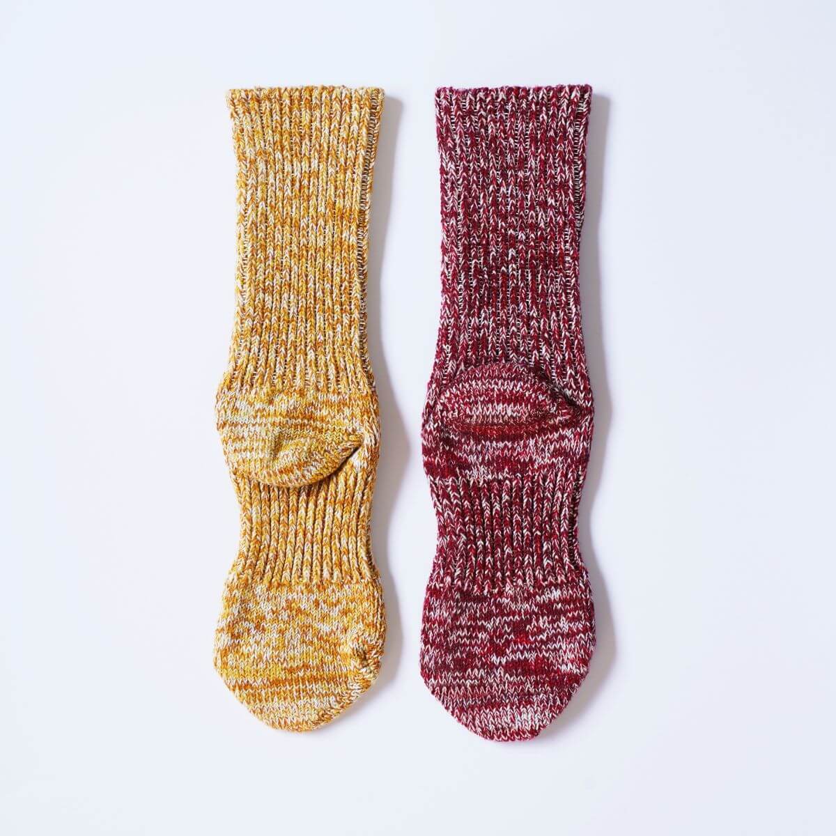 定番ライクで汎用性の高いスラブ調のクルーソックス。