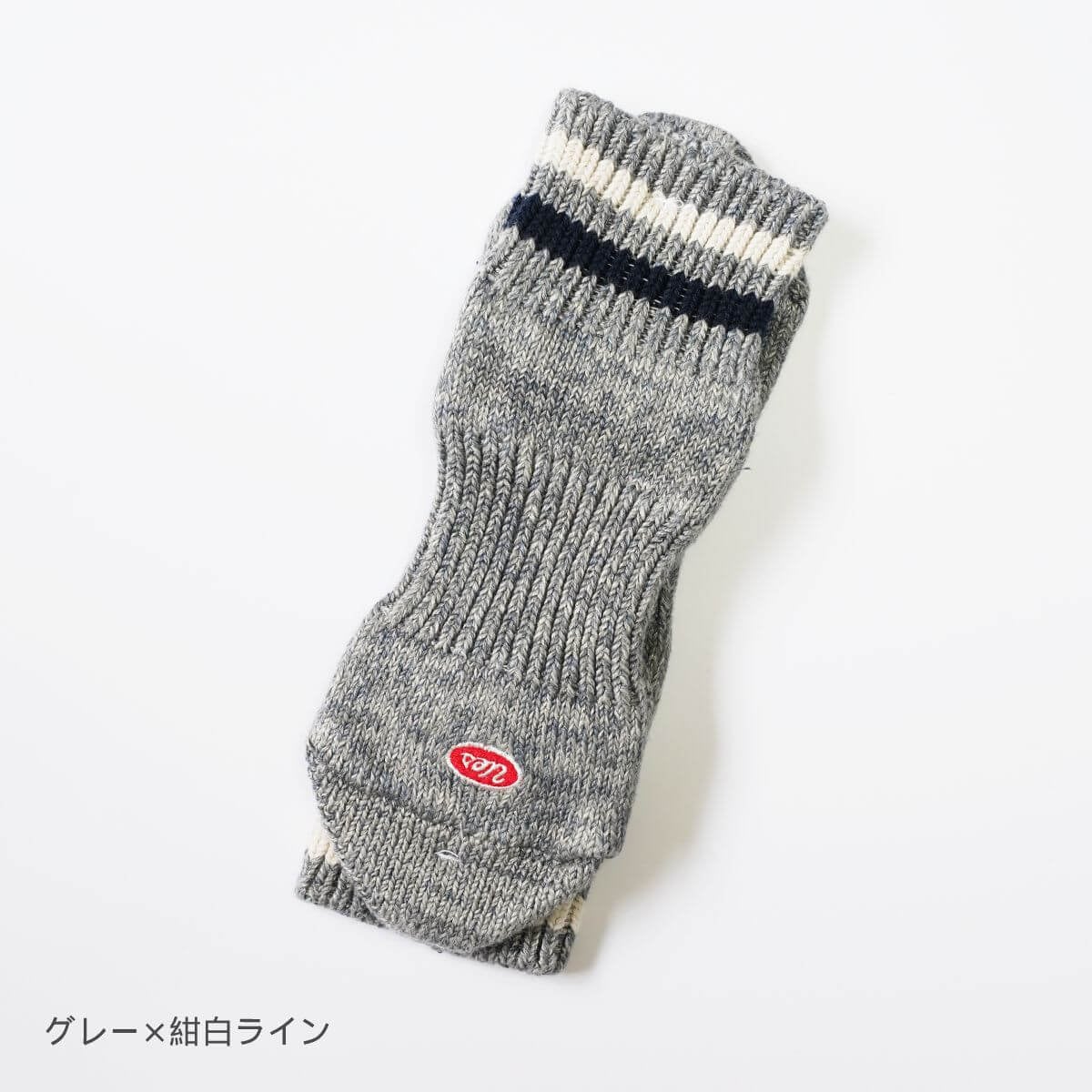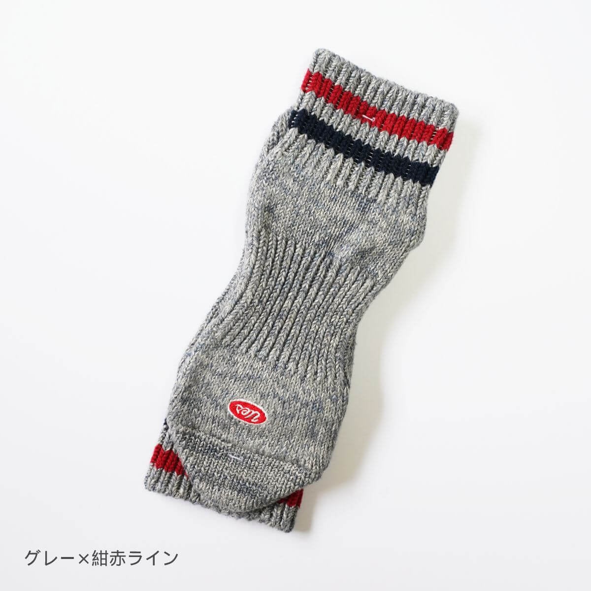 土ふまず部分と履き口をリブ編みにして、ズレないようにフィット感を高めています。