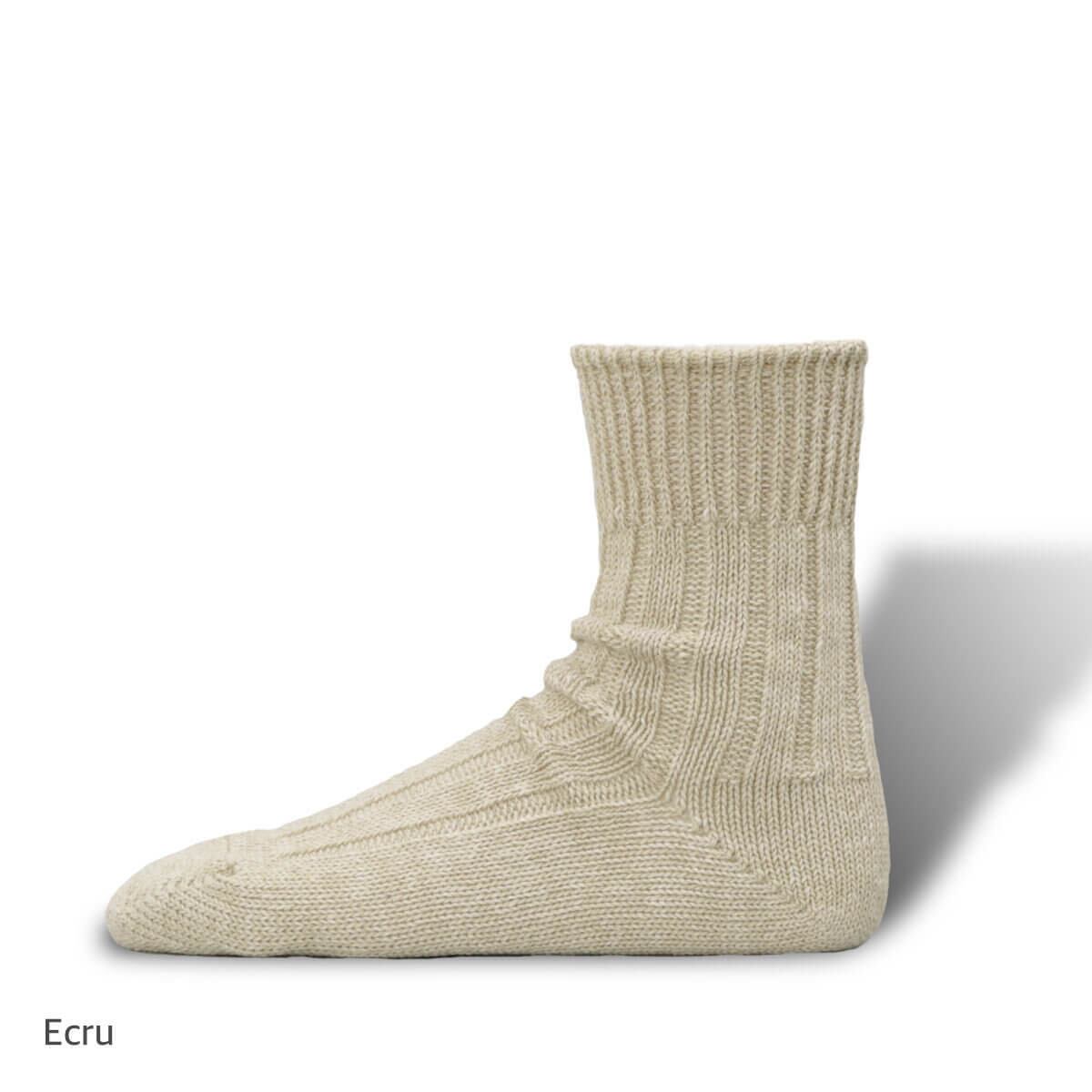 ヨーロッパのリネンに再生ポリエステルを混紡した糸で編み立てた環境にも優しいサスティナブルなリネンソックス。