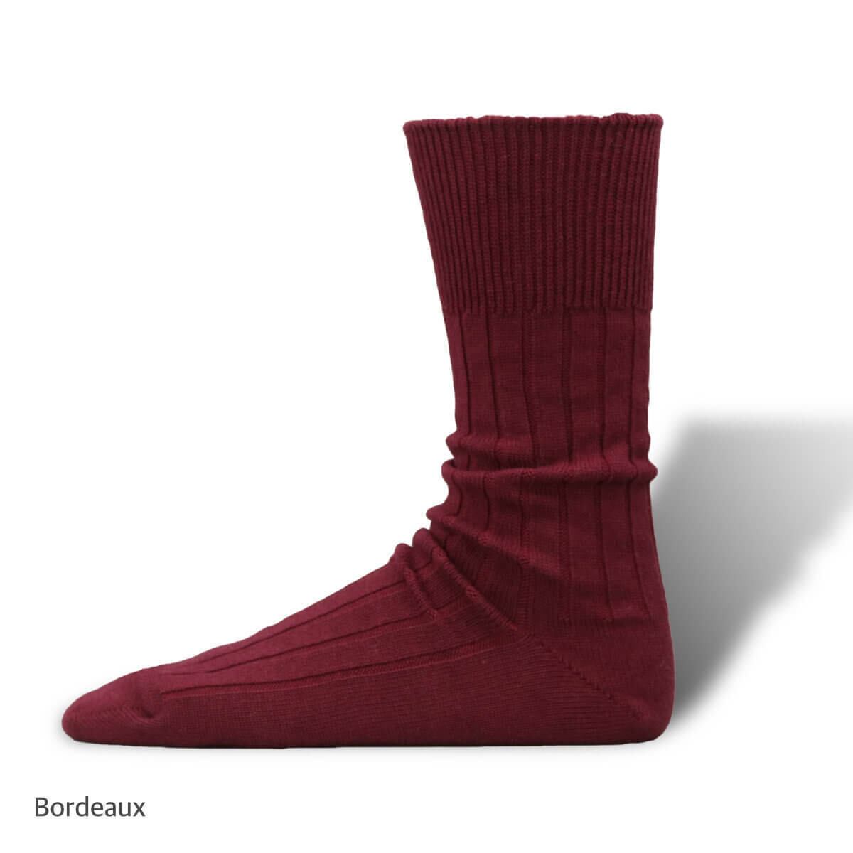 カシミヤとコットンの混紡糸で編みたてた高級感のある靴下。