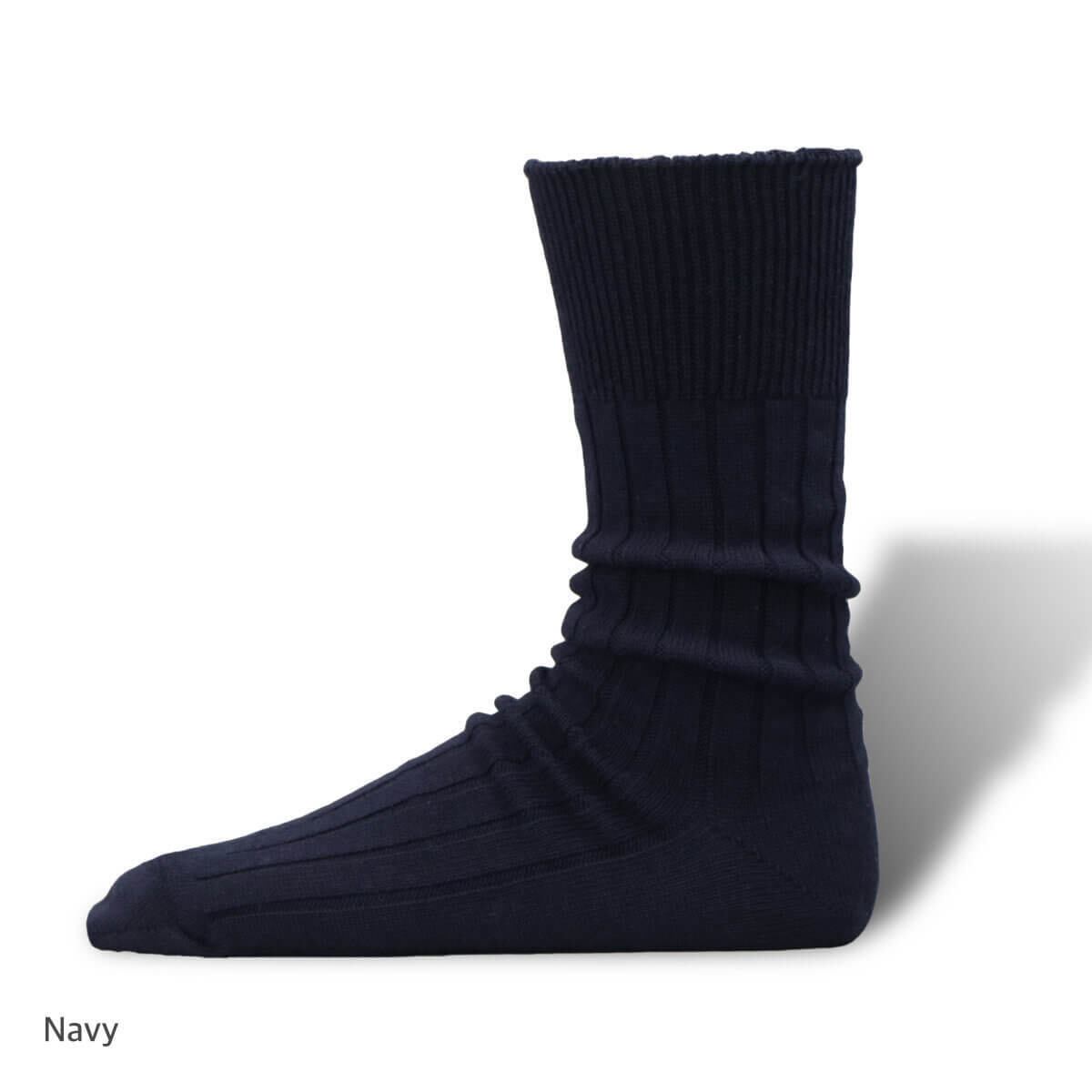 カシミアの上質な質感を持ちながら、耐久性をコットンが補完するバランスの整ったリブソックス。