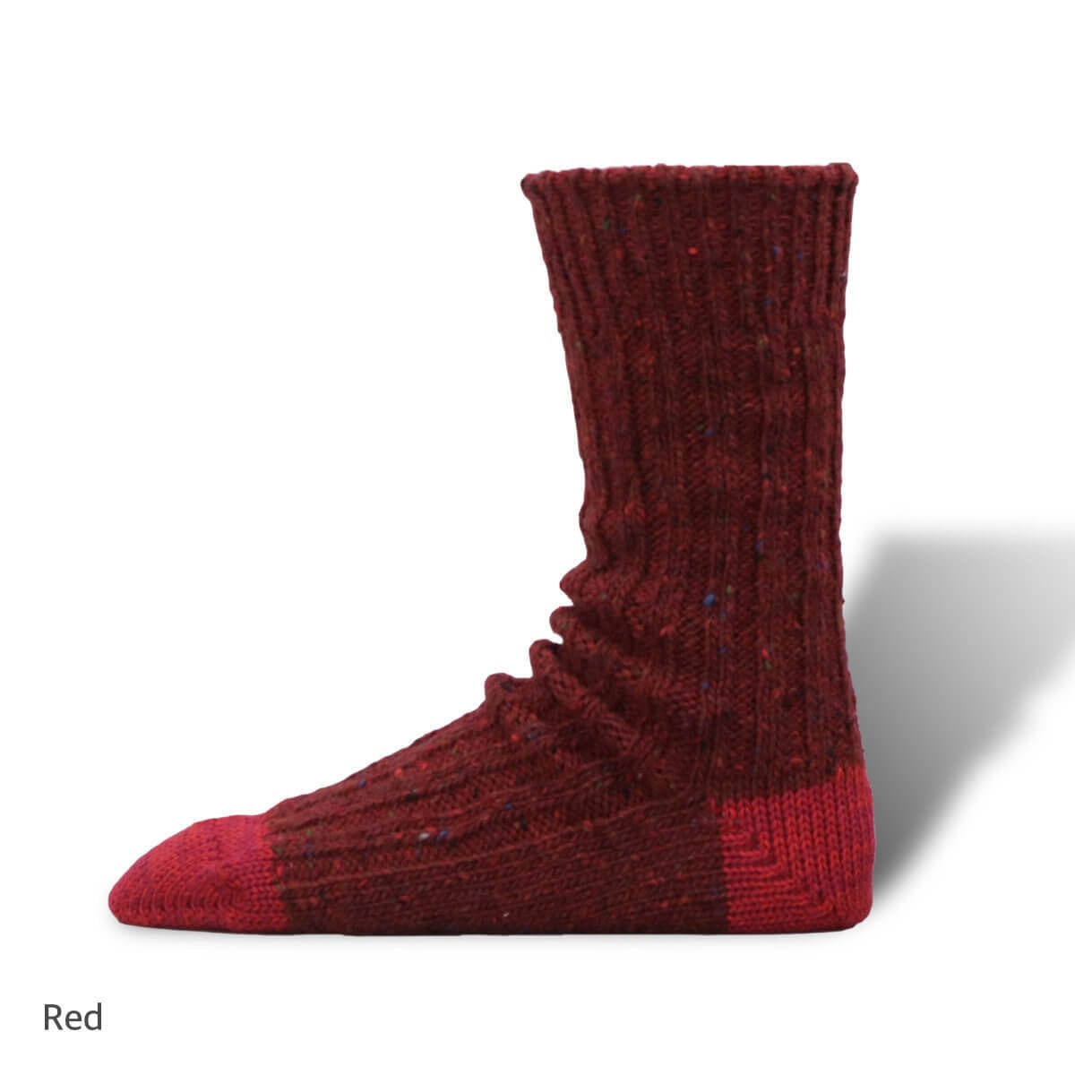 リサイクルウールから作られた糸で編立てた温かみのある靴下。