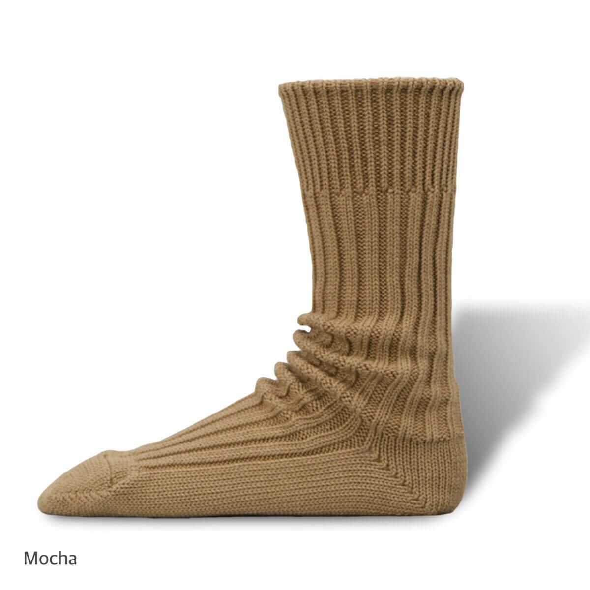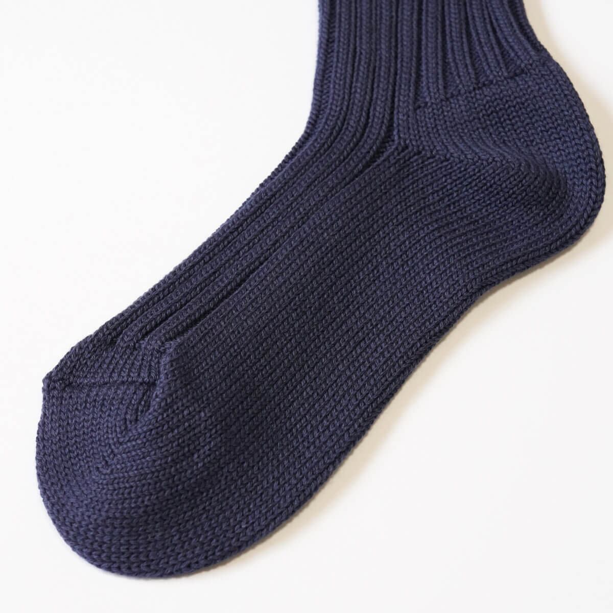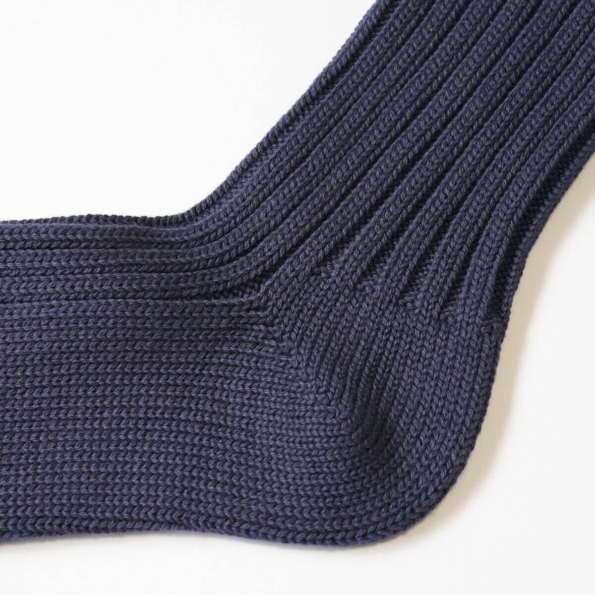 23色展開の豊富なカラーバリエーションが特徴のオーガニックコットンで編んだローゲージリブソックス。