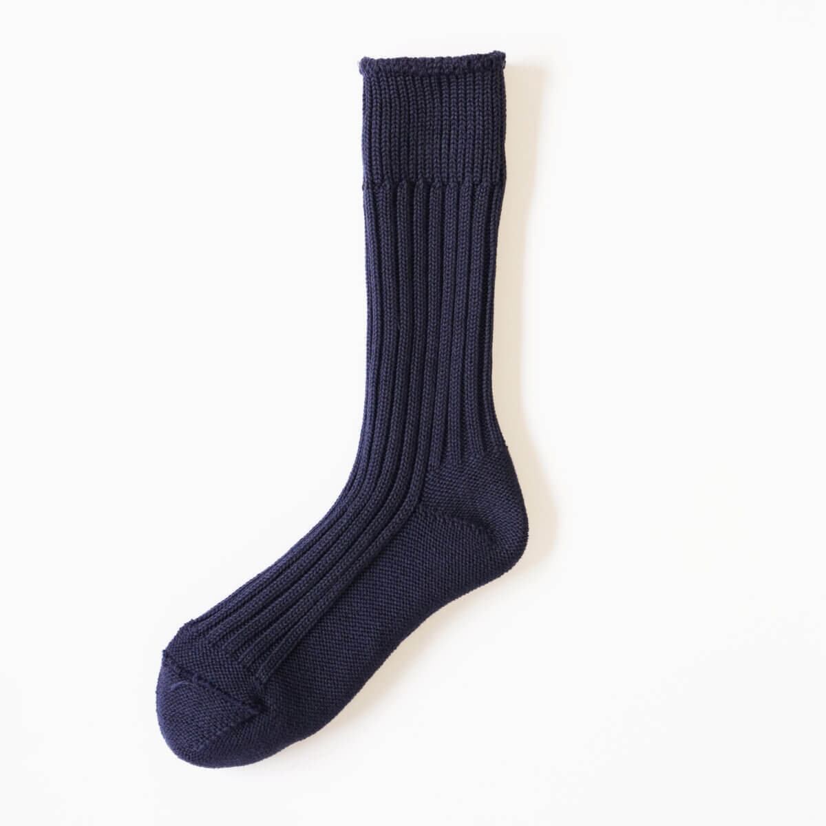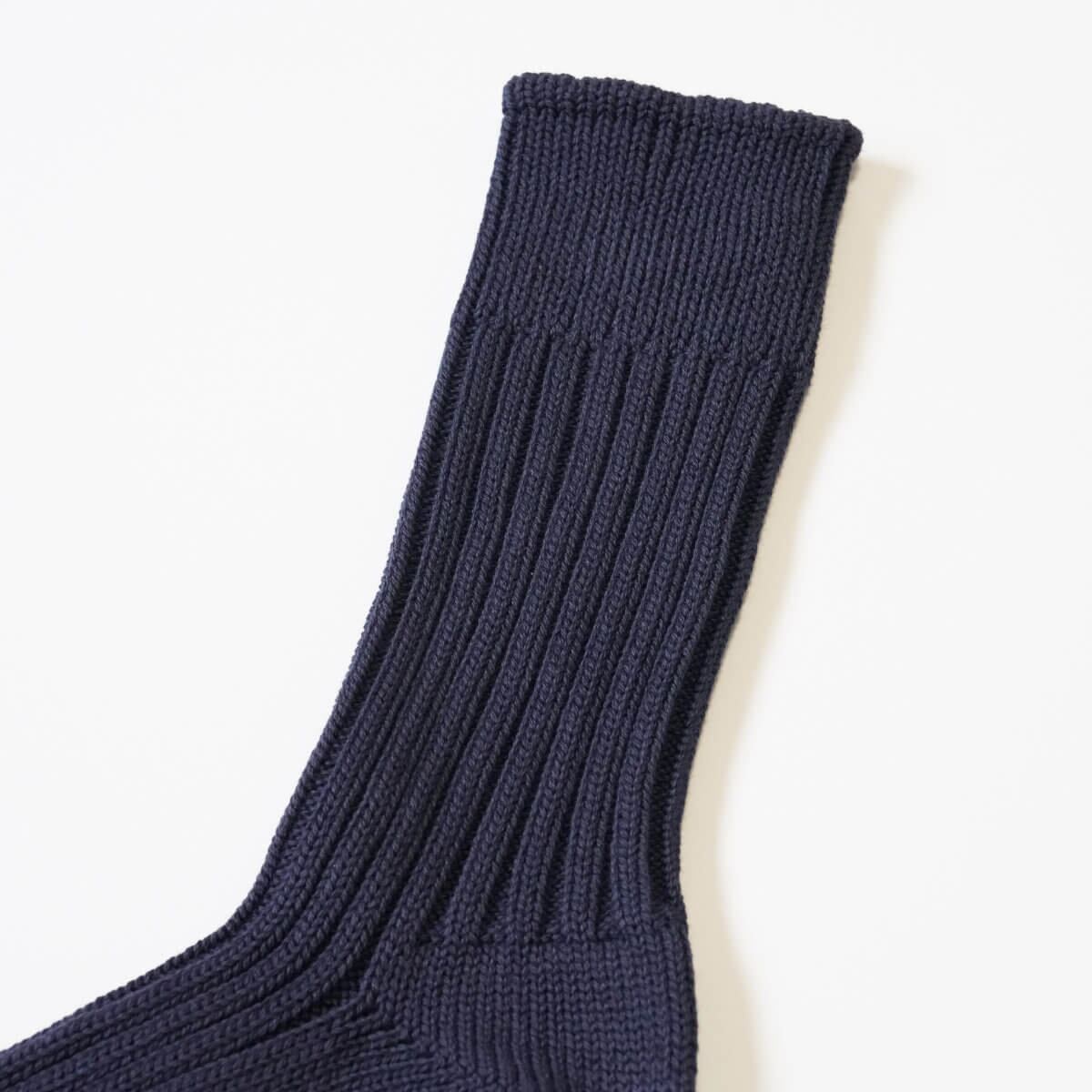 一般的な靴下の約5足分の糸をヴィンテージマシンでゆっくりと丁寧に編みたてた、丈夫で締め付けない履き心地を実現した究極のベーシックリブソックス。