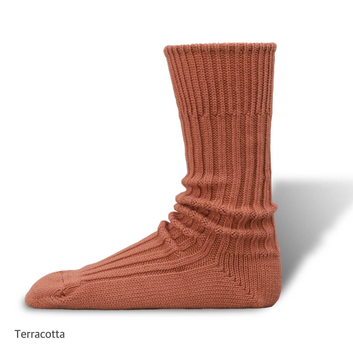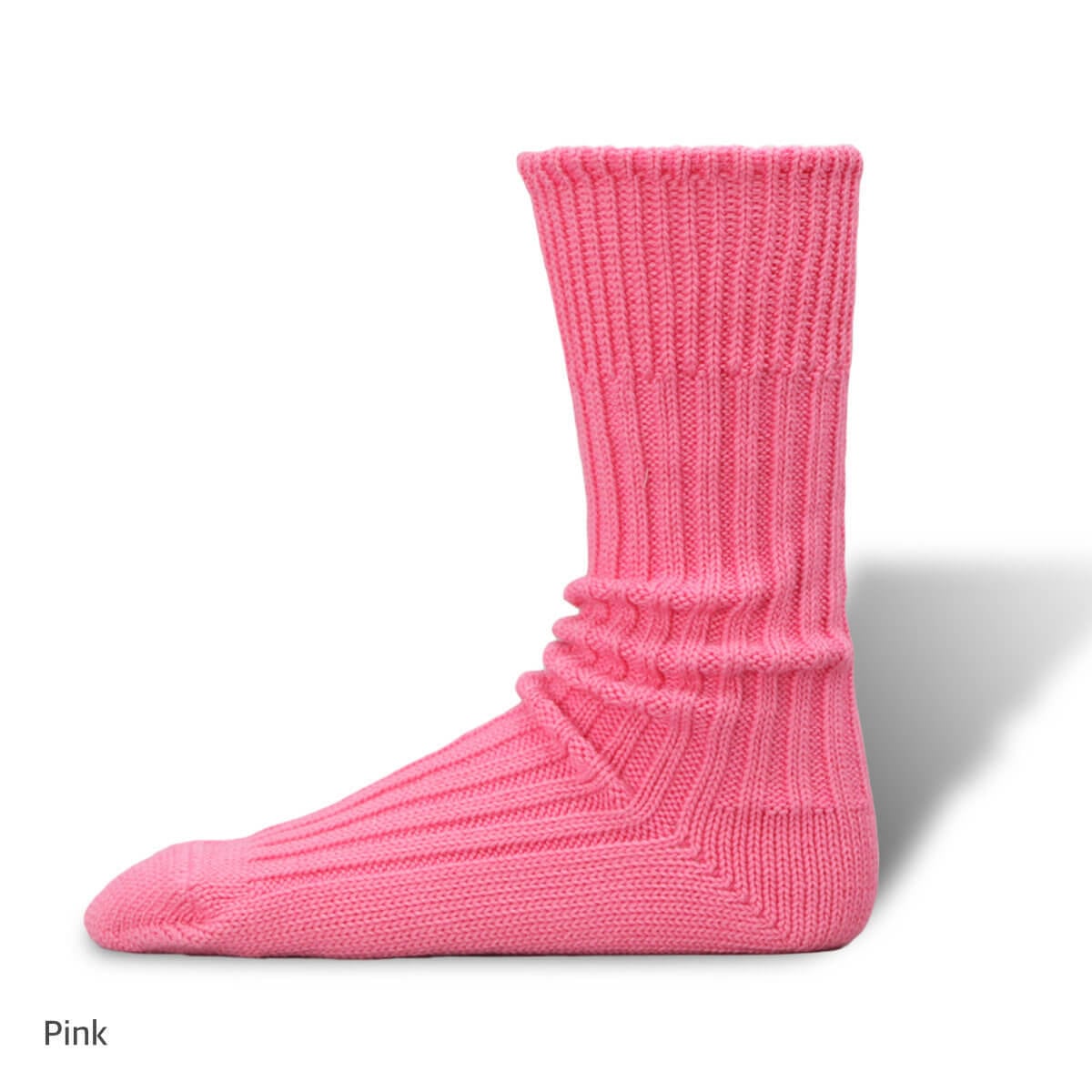 23色展開の豊富なカラーバリエーションが特徴のオーガニックコットンで編んだローゲージリブソックス。