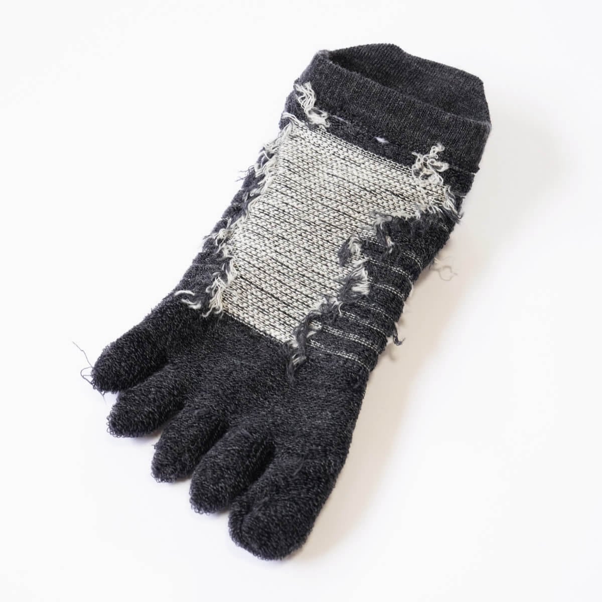 素材には耐摩耗性に優れる生地を採用し、5本指ソックスの弱点である穴あきに対する耐久性が格段にアップしています。