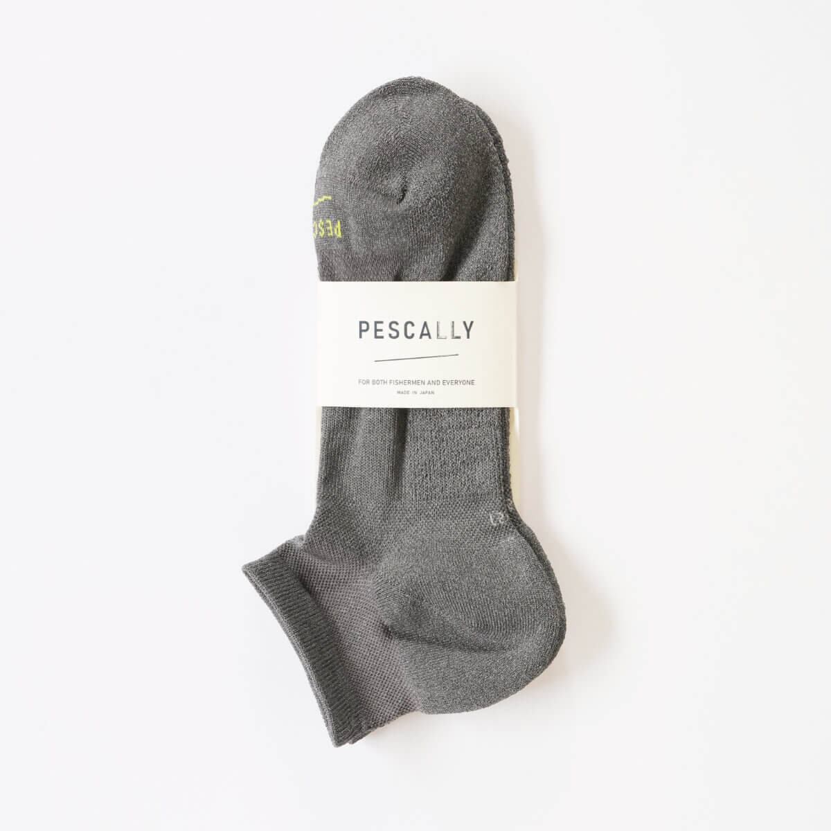 PESCALLYの特徴である吸水速乾性はそのままに、暑い季節を乗り越える薄手仕様+短め丈で夏場のムレにも効果的で快適な履き心地です。